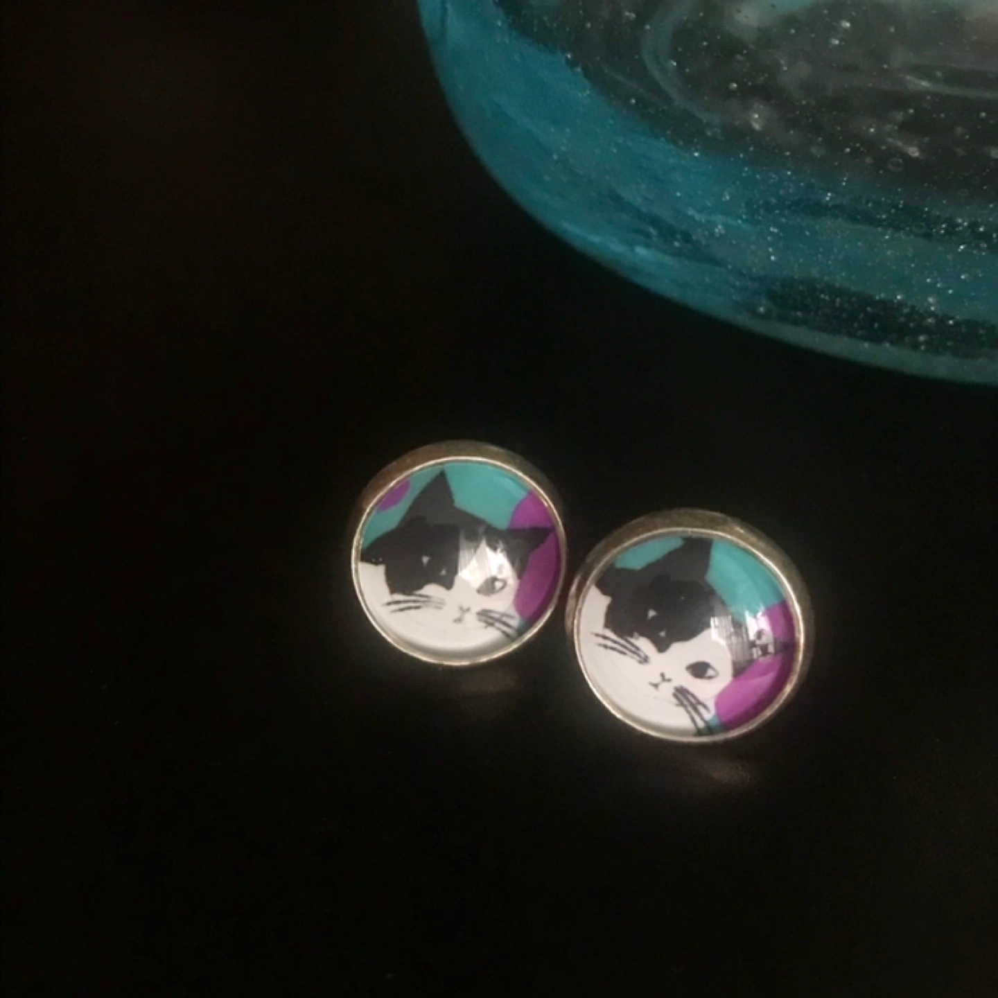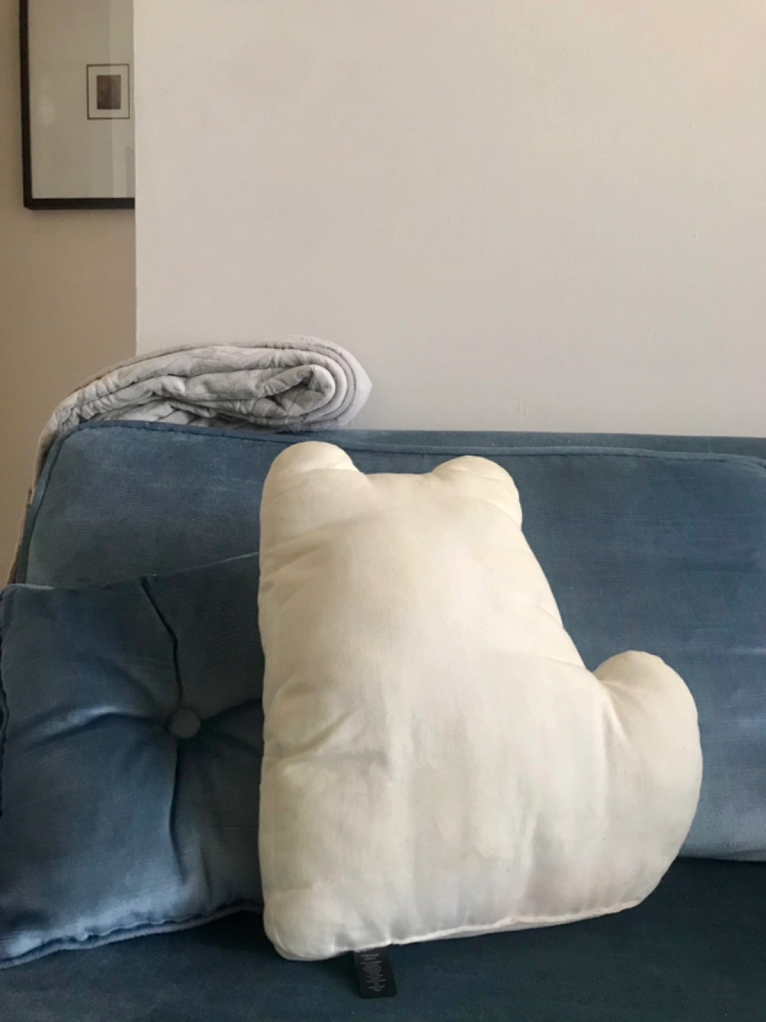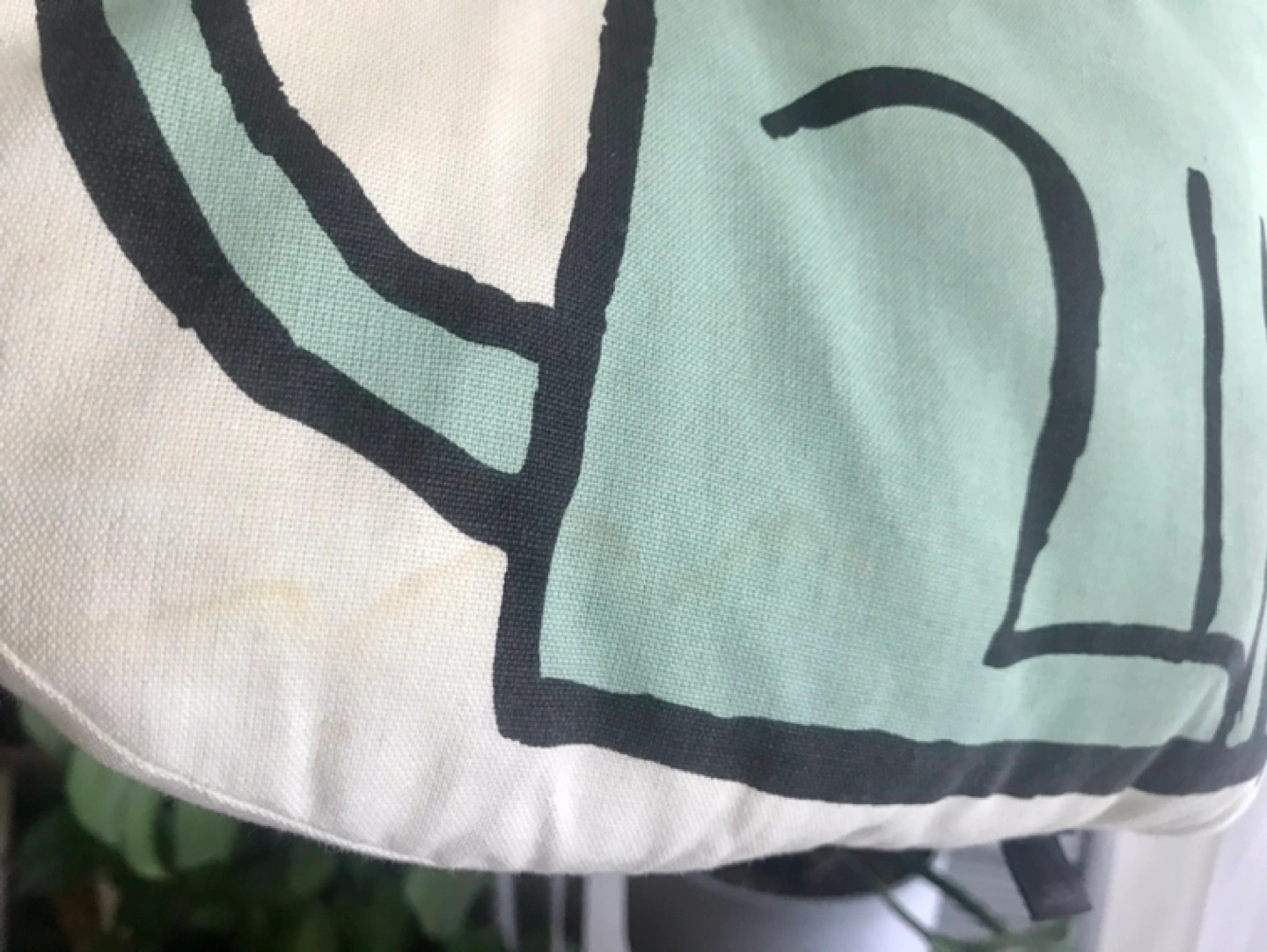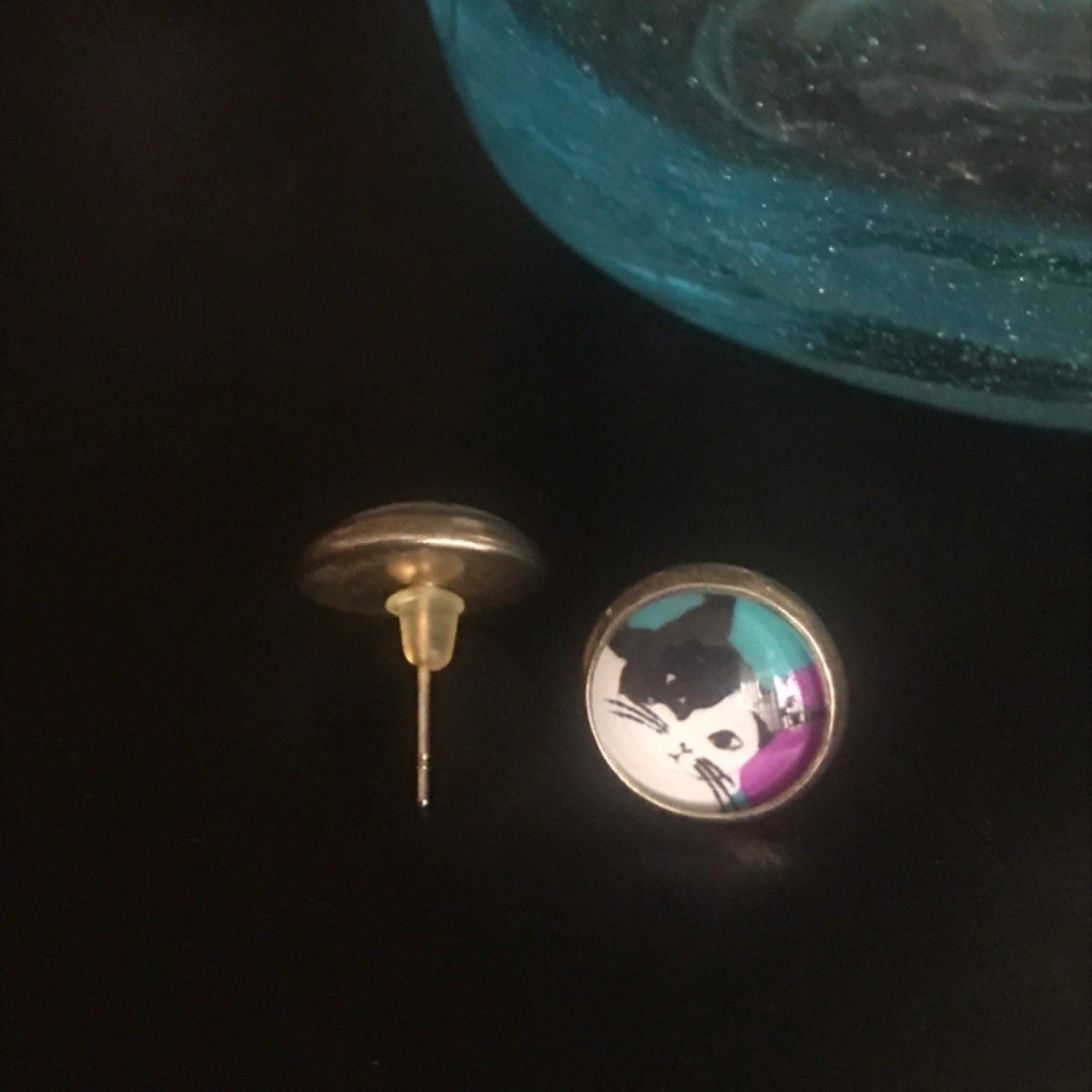 An adorable cushion with a Cat drawing! The Cushion is cut-out/shaped in the cat design. The stuffing is firm and intact, so the cushion is in perfect condition. There are some marks from handling (see close up pics 4, 5), which can be spot-cleaned. It’s not that noticeable once placed on a sofa or chair. 14” W x 13” H Bought at Indigo for $45. This cushion would look great on a living room couch, chair, patio/deck, or on the bed! ————————— ✨FREE: Super cute Cat Earrings!