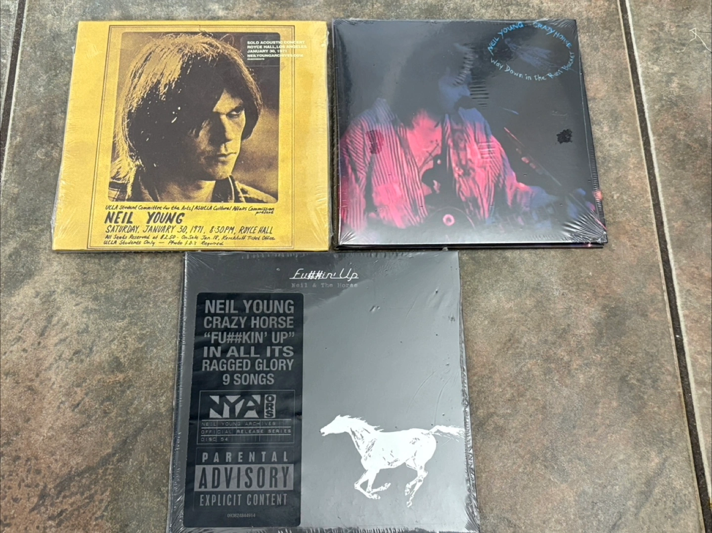 Selling a lot of 3 Neil Young CDs, still sealed in their original packaging! Includes: - UCLA Royal Albert Hall January 30, 1971 - Way Down in the Rust Bucket - Fu##kin' Up Perfect for any Neil Young fan $10 Pickup Georgetown South