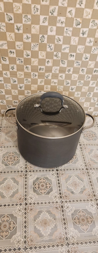 Oneida stock pot, perfect for making soups and stews! It comes with a lid and is in good condition. It has some signs of use inside.