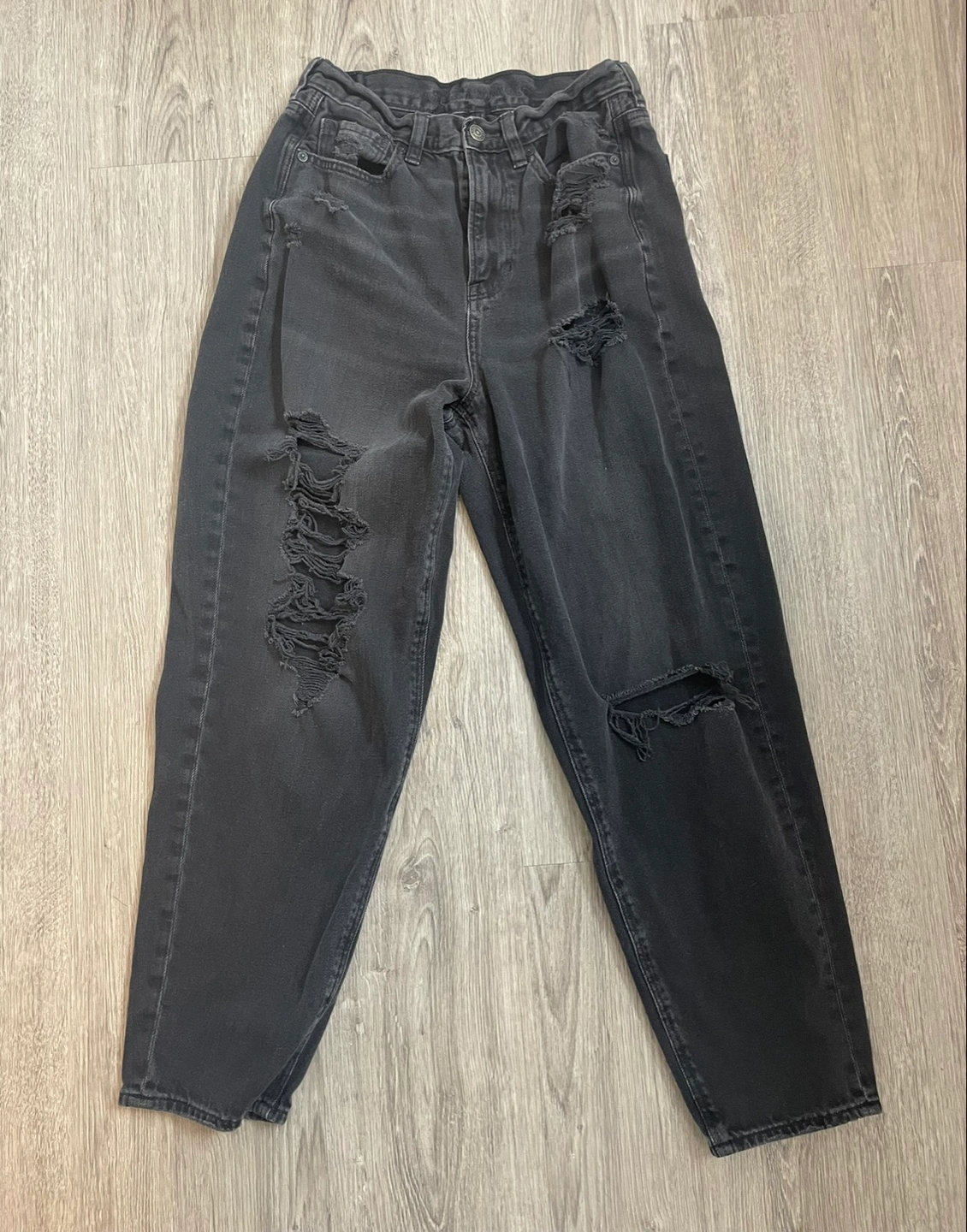 Selling a pair of American Eagle black jeans. They are in good condition with a stylish distressed look. Perfect for a casual outfit!