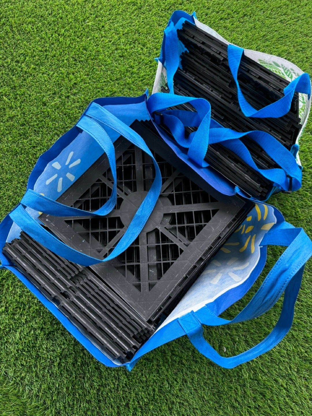 I have some black interlocking floor tiles.They're a great way to quickly cover a space and are easy to assemble!