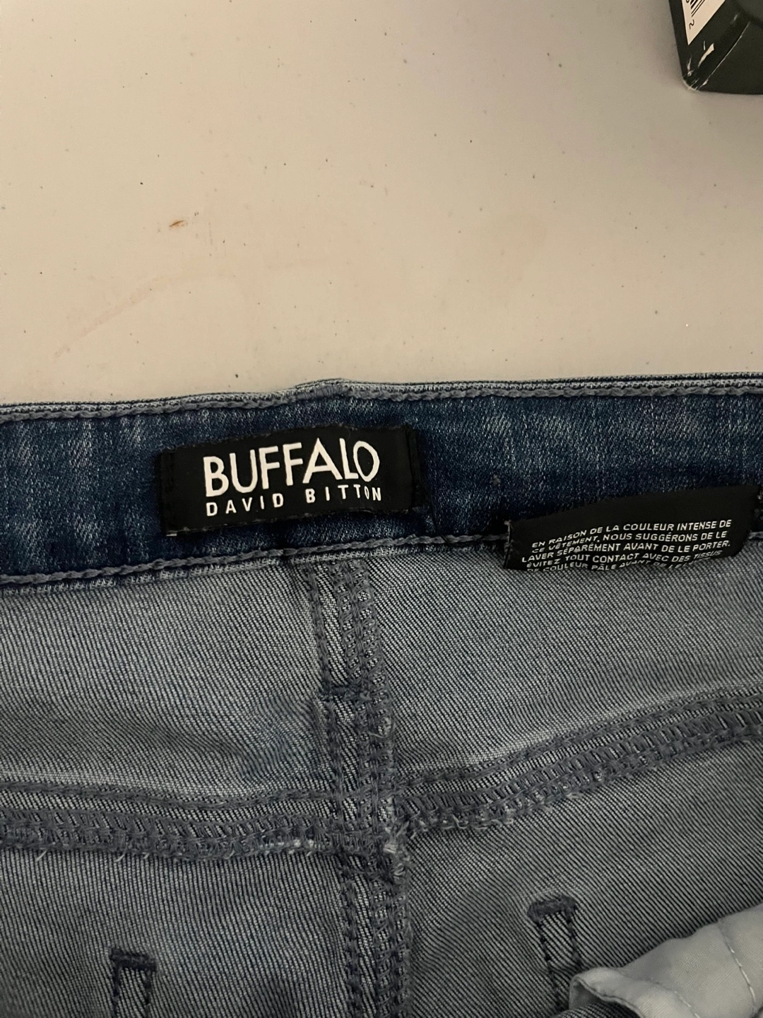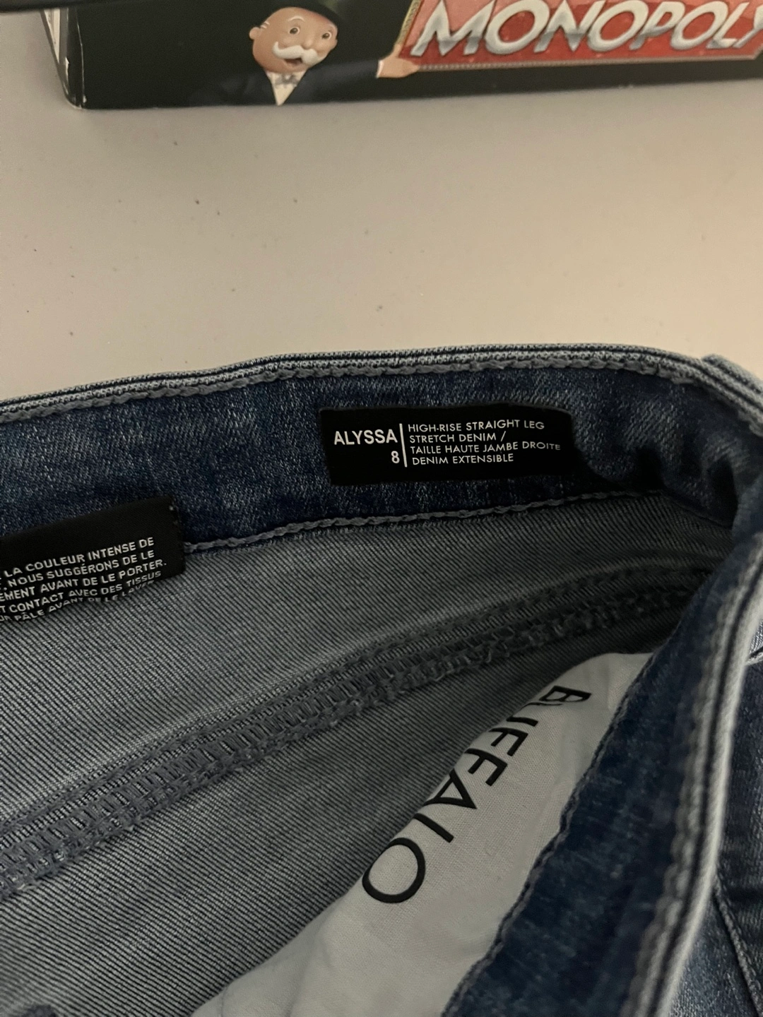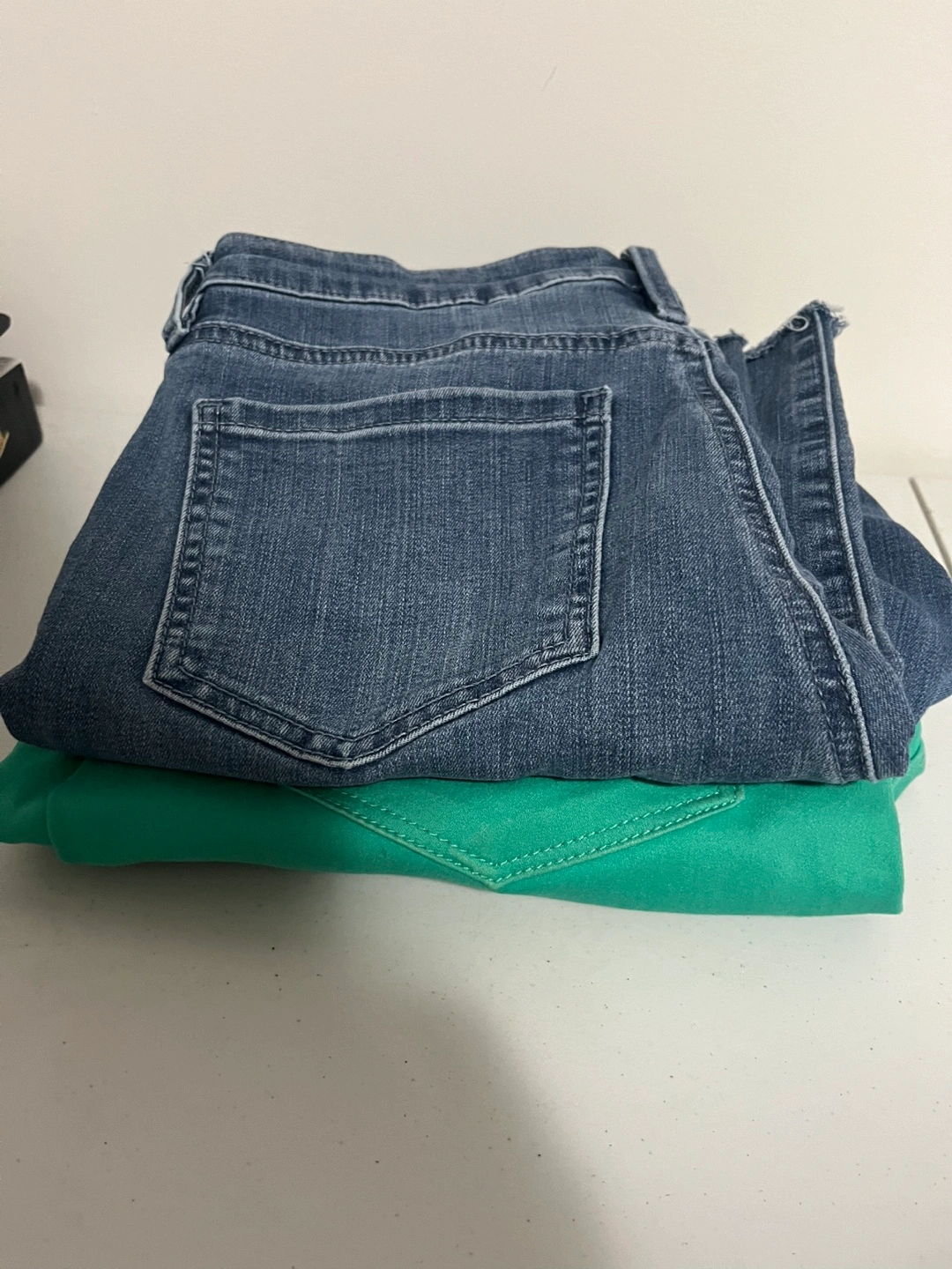 I have two pairs of jeans for sale: - Suko Jeans, size 8, in a vibrant green colour. Made of 66% cotton, 32% polyester, and 2% spandex. - Buffalo David Bitton Alyssa High Rise Straight Leg Stretch Denim Jeans, size 8