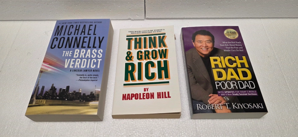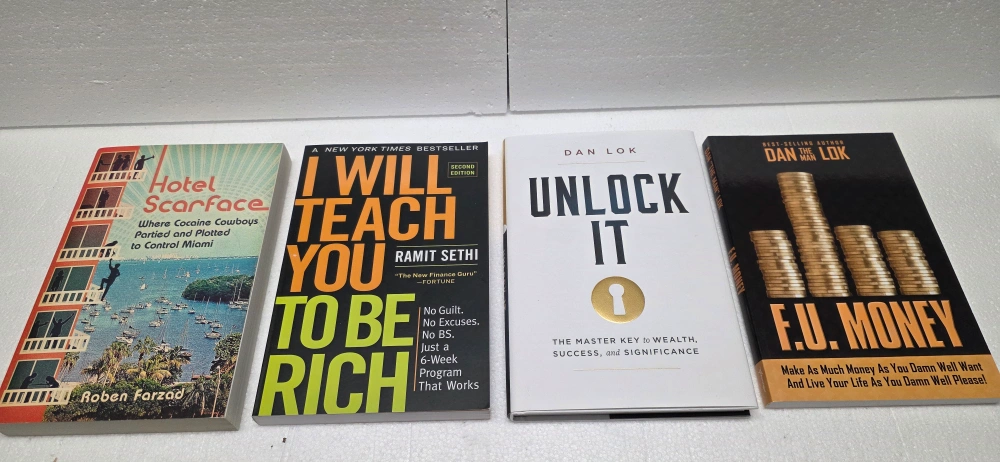 Selling a collection of books including: - Michael Connelly's "The Brass Verdict" $10 - Napoleon Hill's "Think & Grow Rich" $10 - Robert Kiyosaki's "Rich Dad Poor Dad" $5 - "Hotel Scarface" by Roben Farzad $15 - Ramit Sethi's "I Will Teach You To Be Rich" $15 - Dan Lok's "Unlock It" and "F.U. Money" $30 for both all prices are negotiable take all books for $70