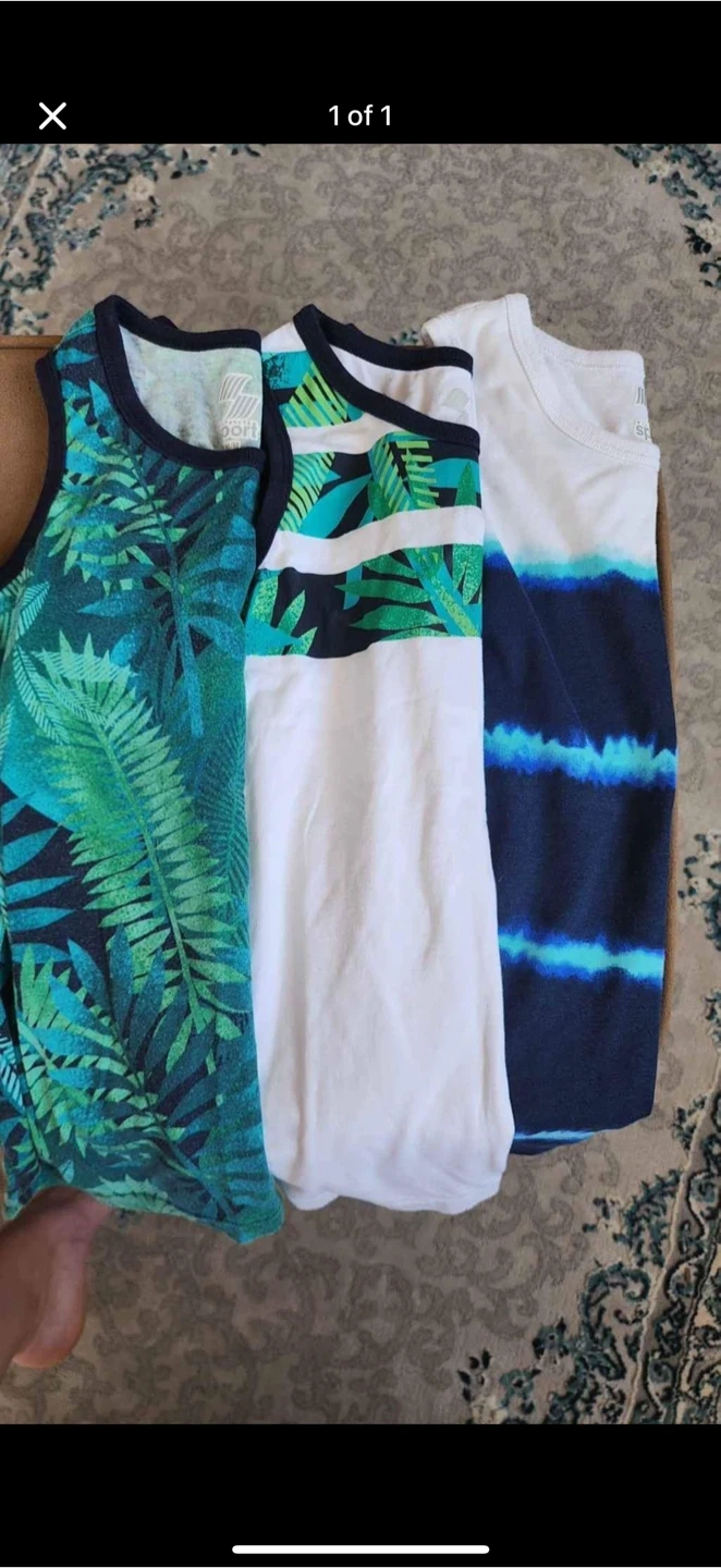 Selling a set of three boys' tank tops in size 10/12. They feature fun patterns and are in good condition for summer!