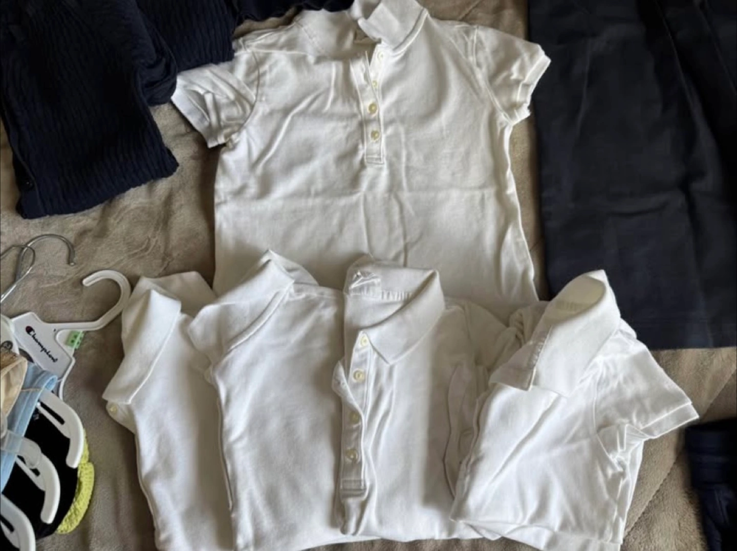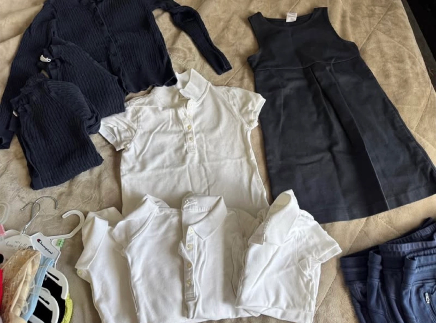 Selling a bundle of Gap kids clothing. Includes polo shirts, a cardigan, sweatpants, and a dress. All in good condition and perfect for school or play! used for 1 month White Blouse $7 each (Medium) Navy Blue Pants $10 each (Small 6-7) Navy Blue Cardigan $10 each (Medium) Navy Blue Jumper Dress $10 each (Medium 8) Pick up in Pickering any day or Meet up in Eaton Centre weekdays
