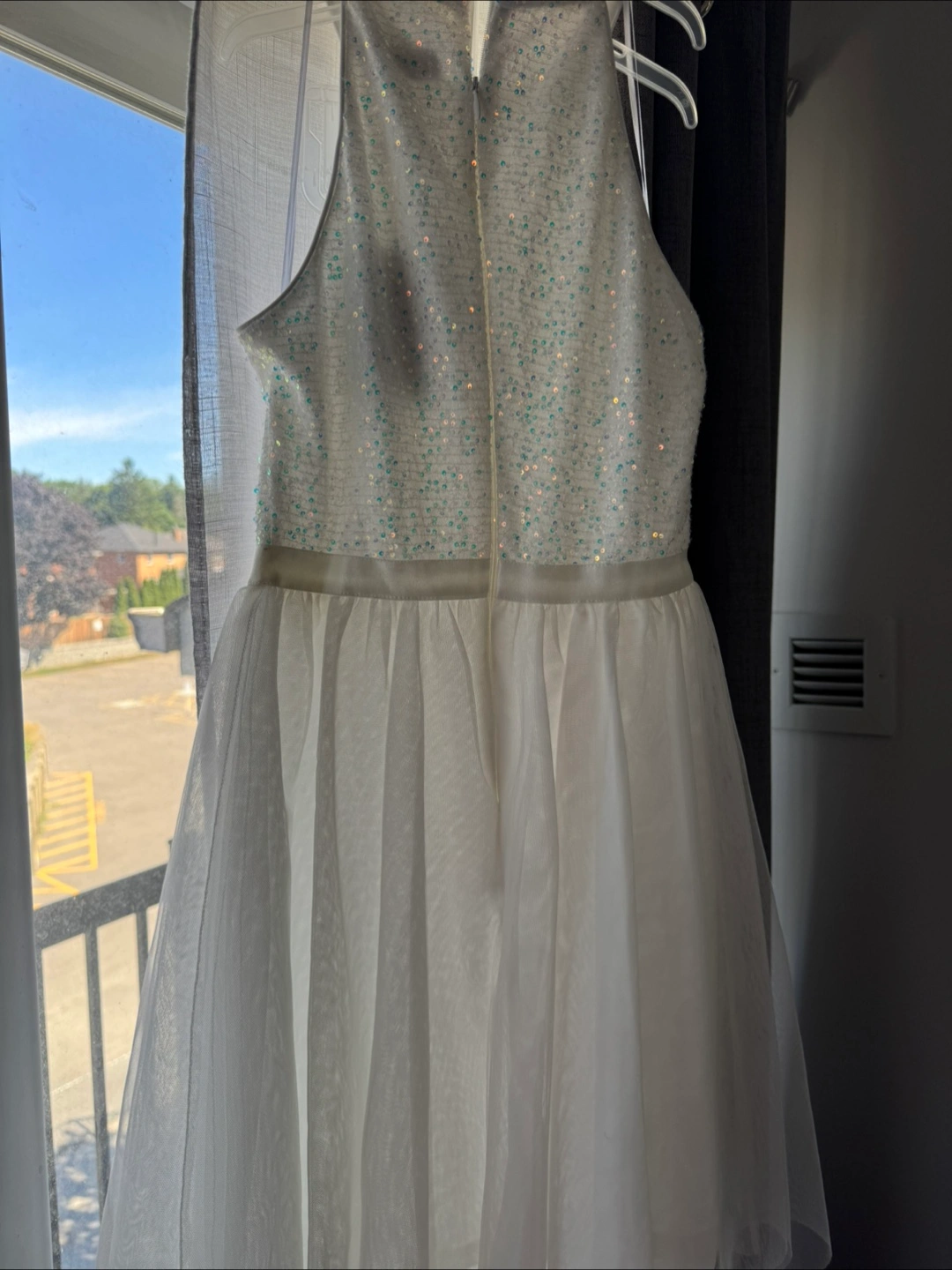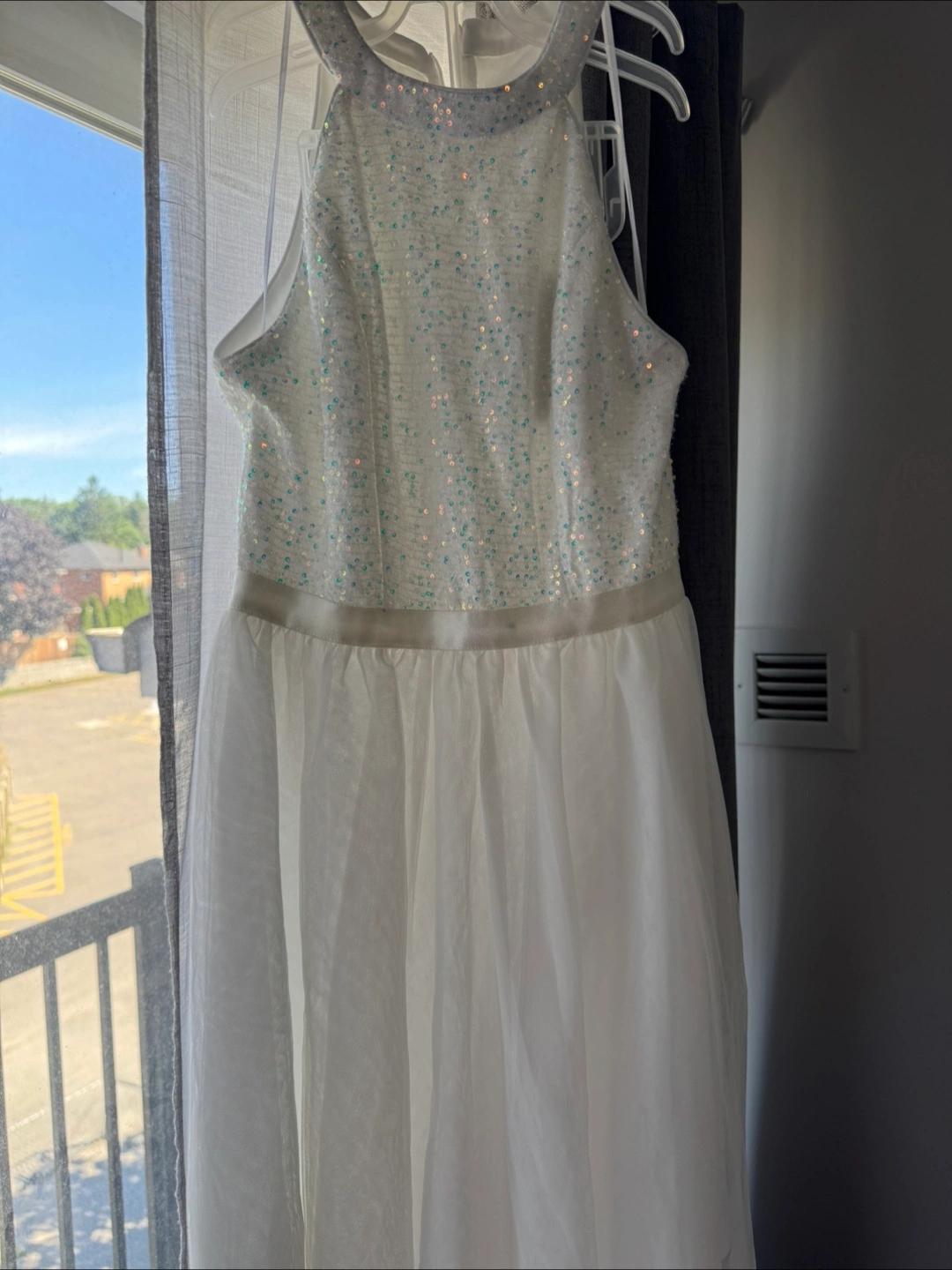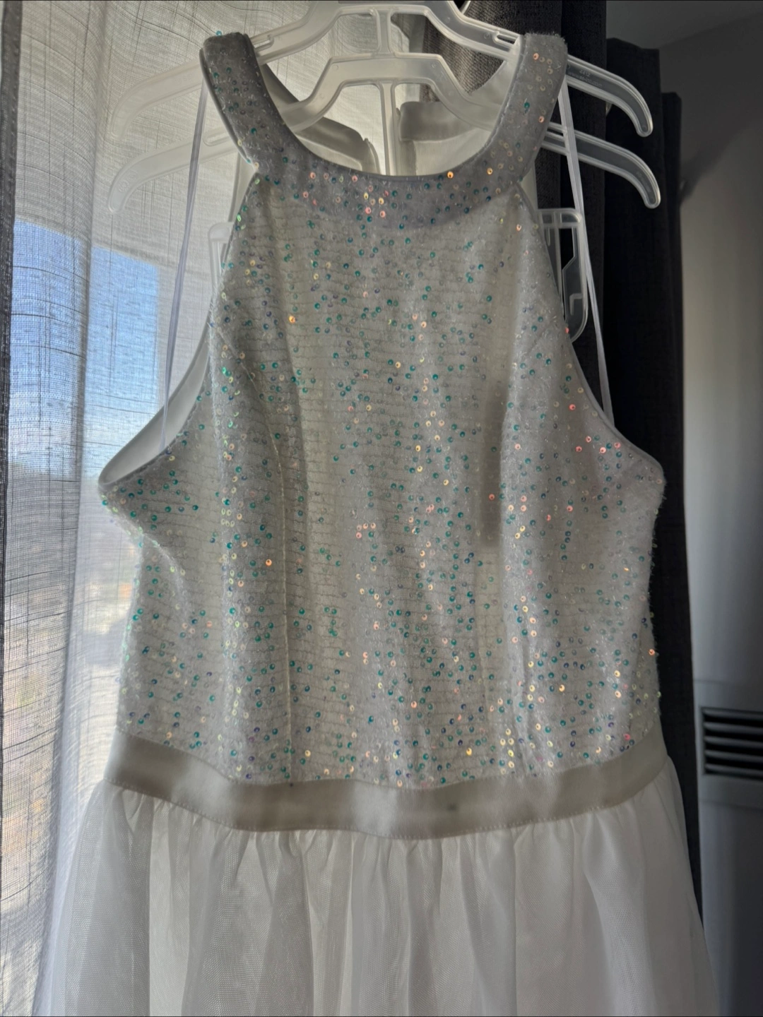 Selling a lovely white dress with sequin detailing. It's in great condition and perfect for a special occasion! Brand New Fits to 9-10year old kid Pick up in Pickering any day or meet up in Eaton weekdays