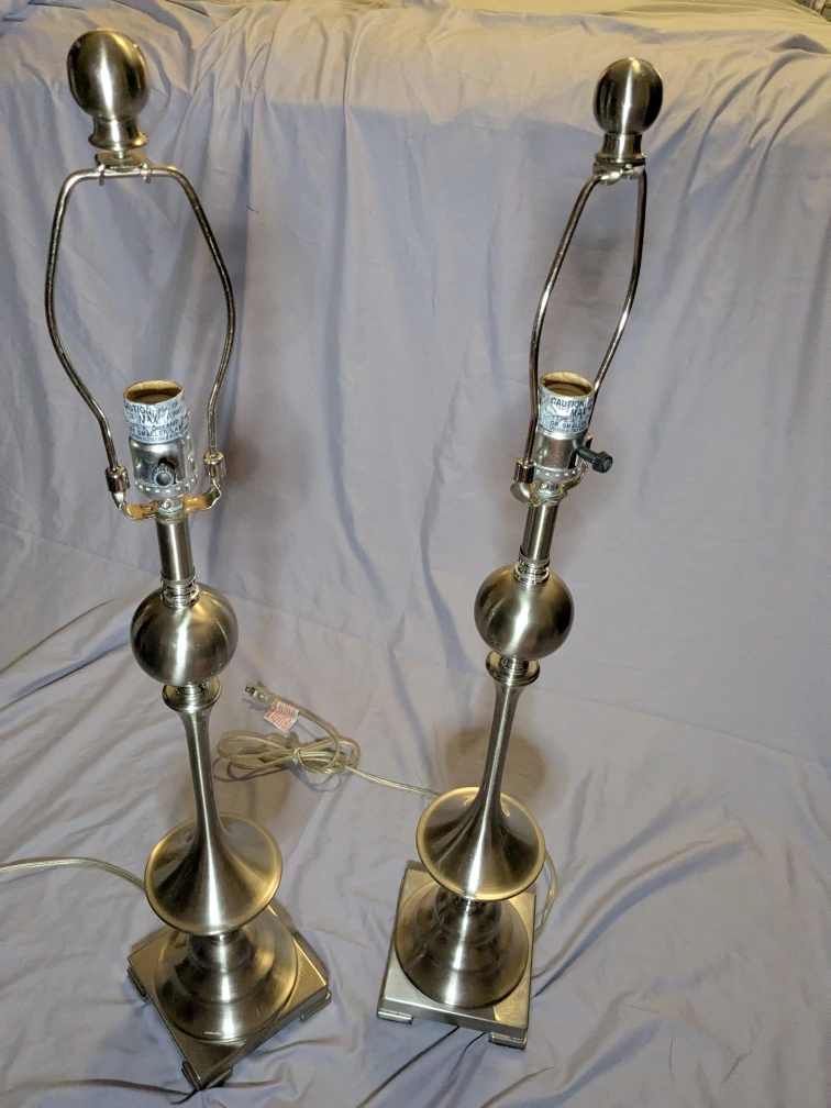 Matching brushed nickel lamps. Good condition no lampshades. from a smoke-free pet-free home. I just don't have any use for them anymore.