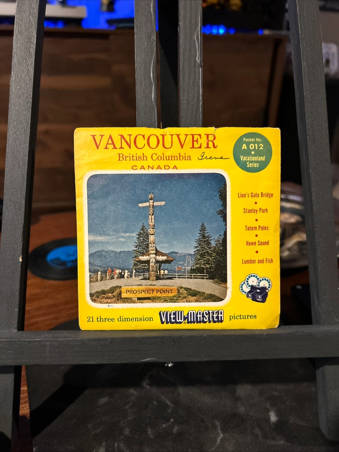 Selling a vintage View-Master packet featuring Vancouver, British Columbia! This is from the Vacationland Series, Packet No. A 012. It includes 21 three-dimension pictures of places like Lion's Gate Bridge, Stanley Park, Totem Poles, Howe Sound, and Lumber and Fish
