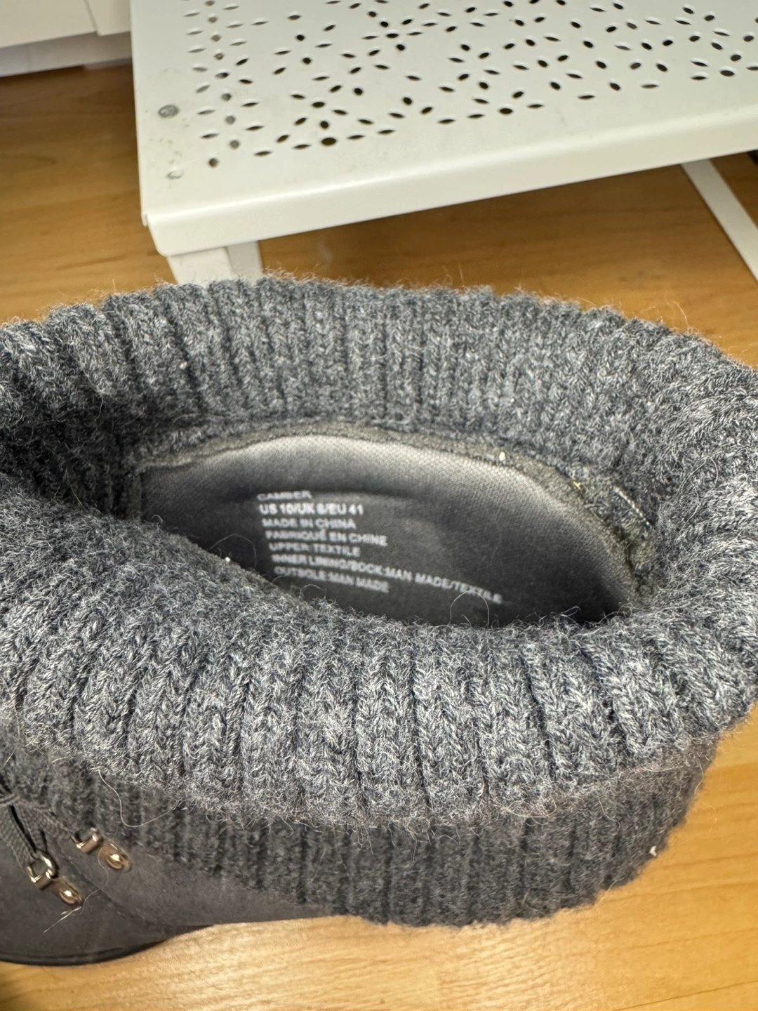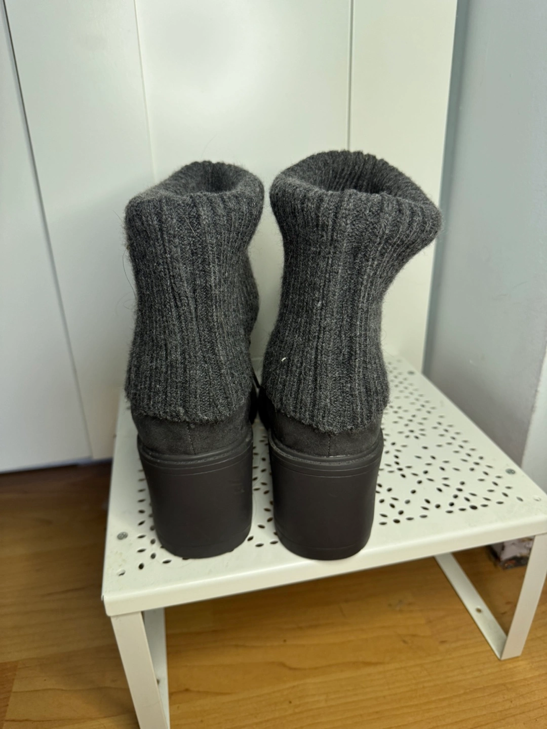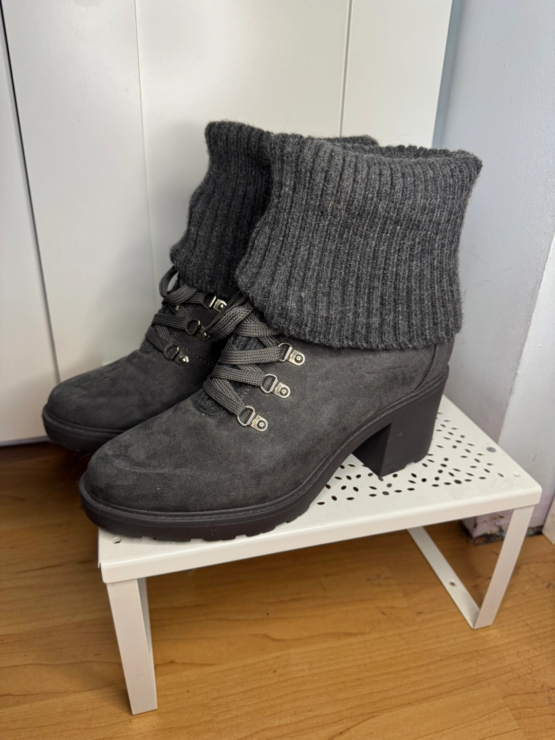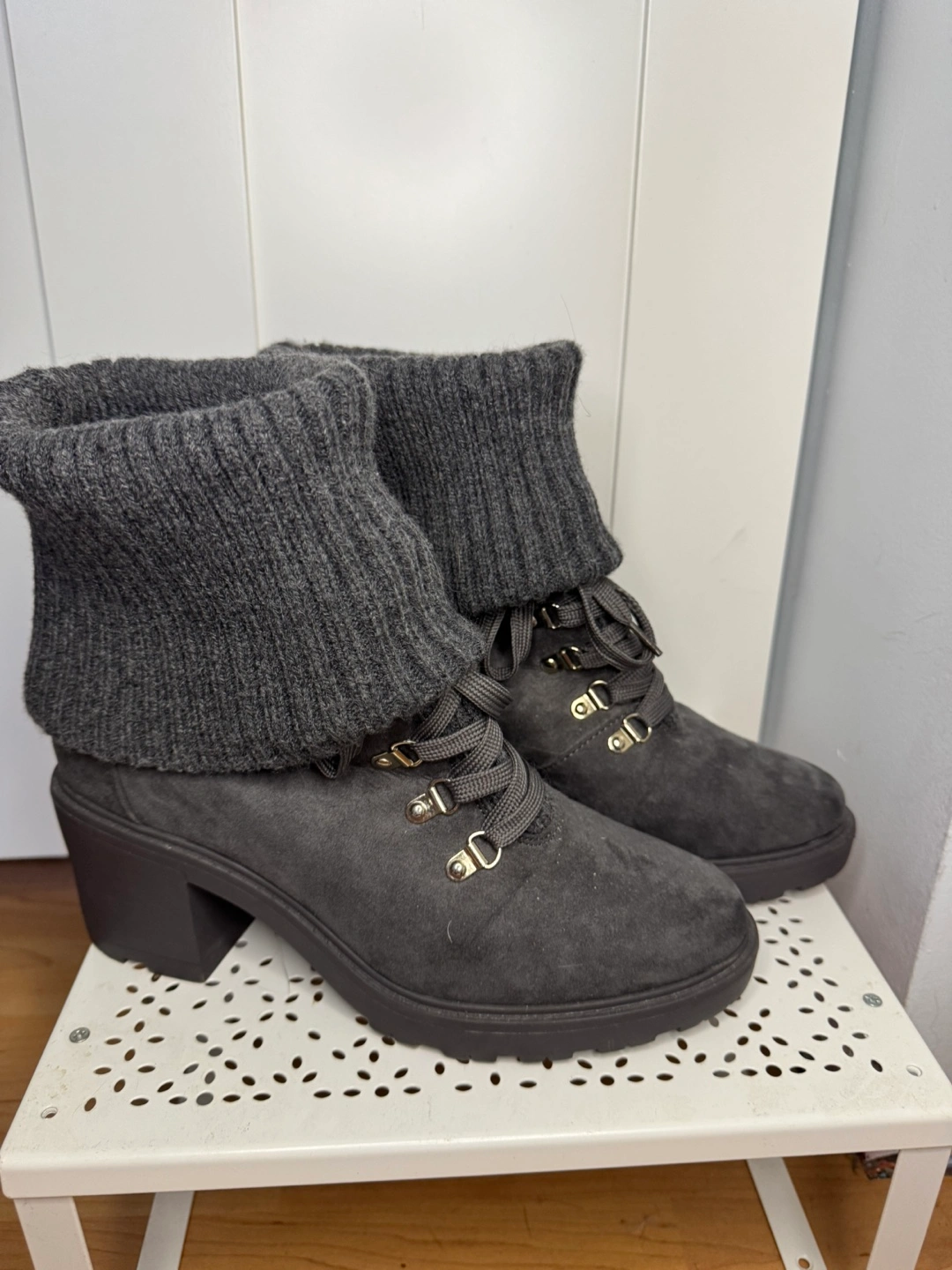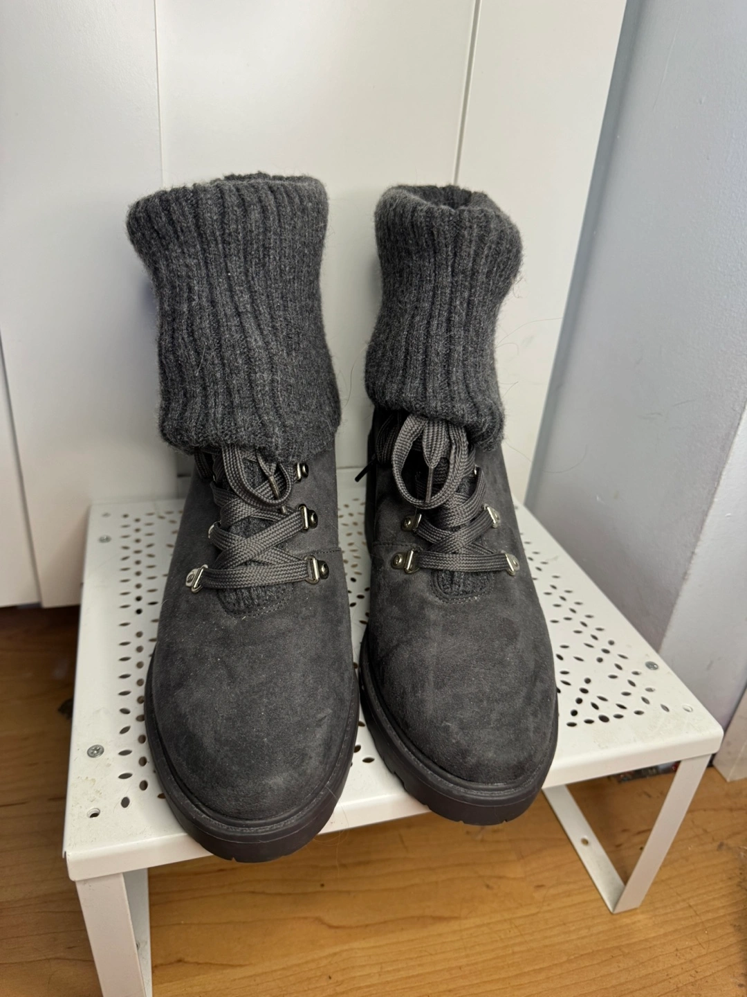 These are a pair of grey Camber boots in EU size 41. They feature a knitted sock detail on top and a lace-up front. US size 10 Never worn out of the house. Just to try on