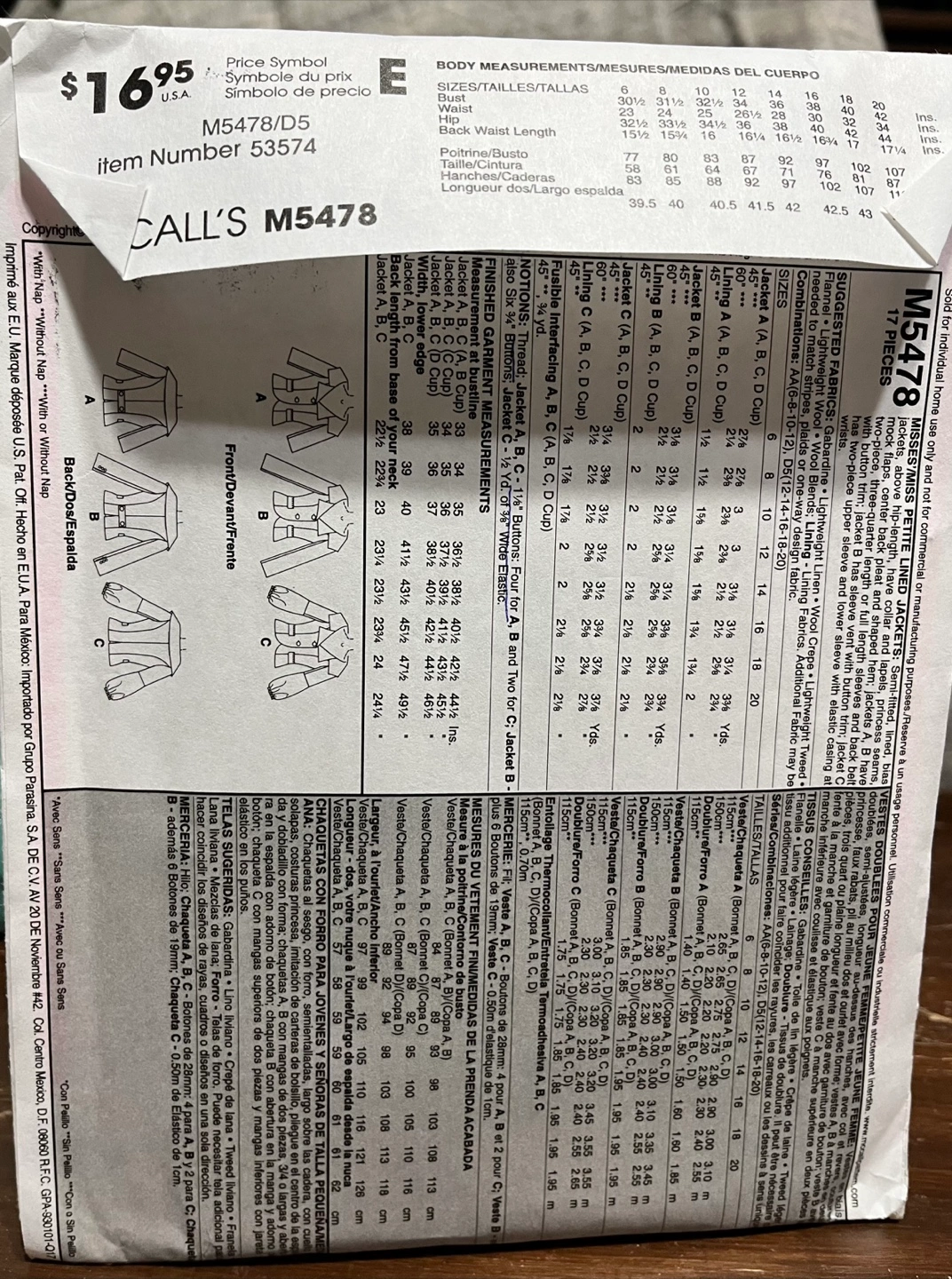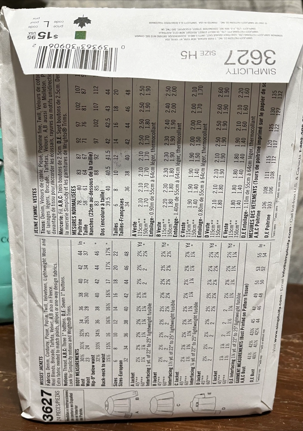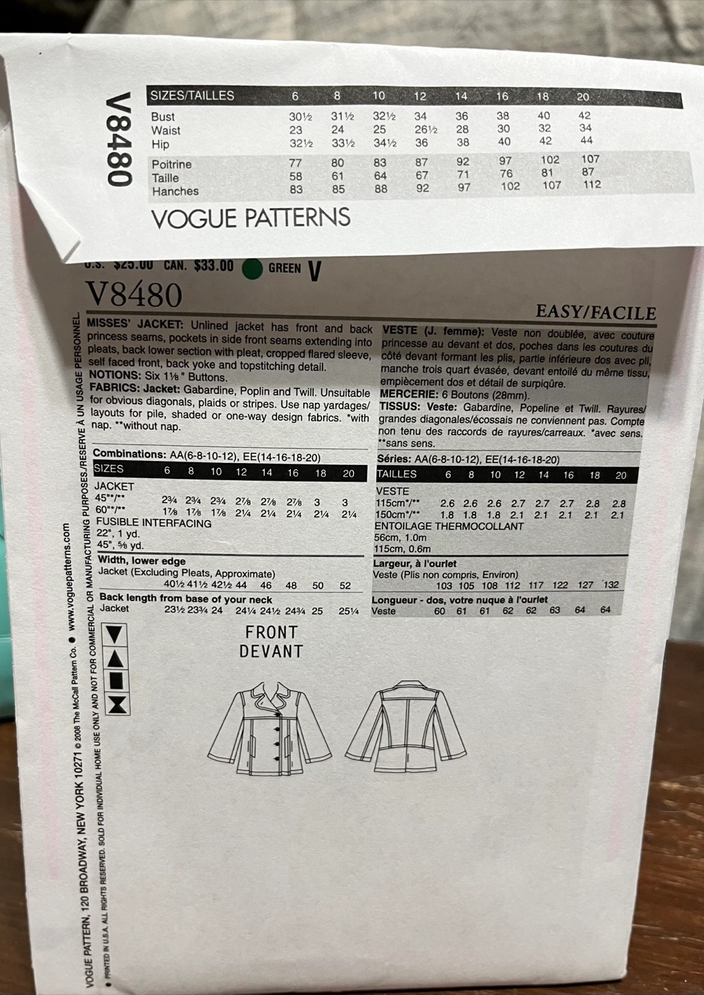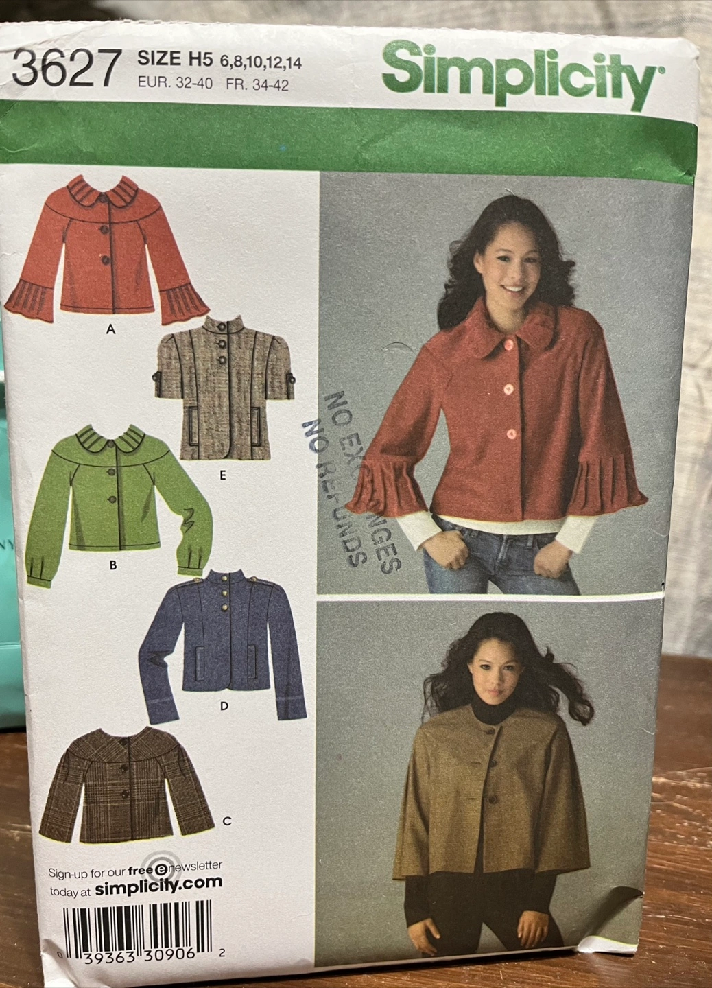* Please see my other listings All patterns are brand new, never used. Price in listing is per pattern ($5 each). Simplicity 3627: size 6/8/10/12/14 McCalls 5478: size 12/14/16/18/20 (writing on sleeve/envelope Vogue 8480: size 6/8/10/12 Burda 8022: size 8/10/12/14/16/18/20 Located in Mayland Heights, Calgary (NE) First come, first served No holds without e-deposit No delivery Prices are firm
