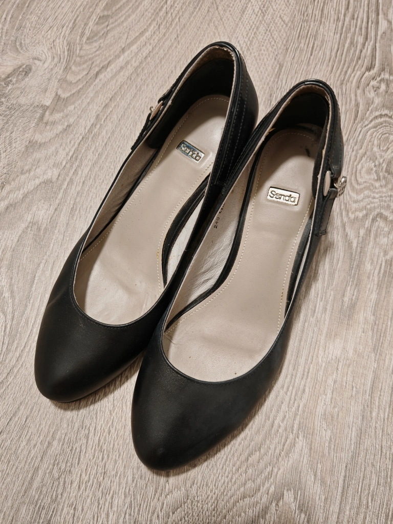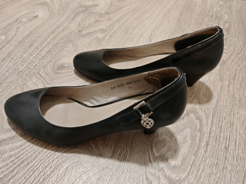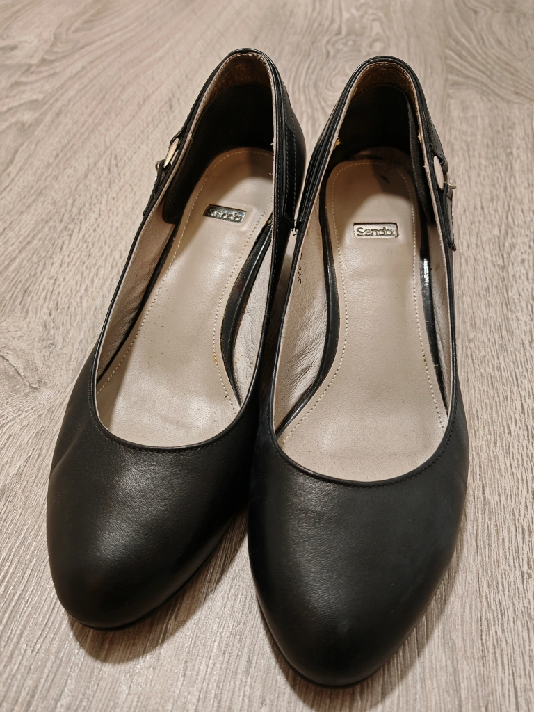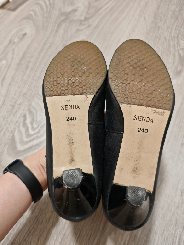 These are a pair of Senda black leather heels. They are in good condition and would be great for a night out or a special occasion. The size is 240, which is approximately a US size 7. They have a cute heart detail on the buckle! can meet near Yonge Sheppard or Yorkdale