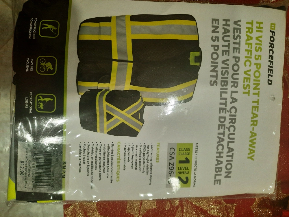 Selling a brand new Forcefield Hi Vis 5 Point Tear-Away Traffic Vest! It's still in the original packaging. Features include: - Contrasting reflective piping for day/night visibility - Breathable and soft - Ice mesh material - Flap pockets - Machine washable Size: S/M