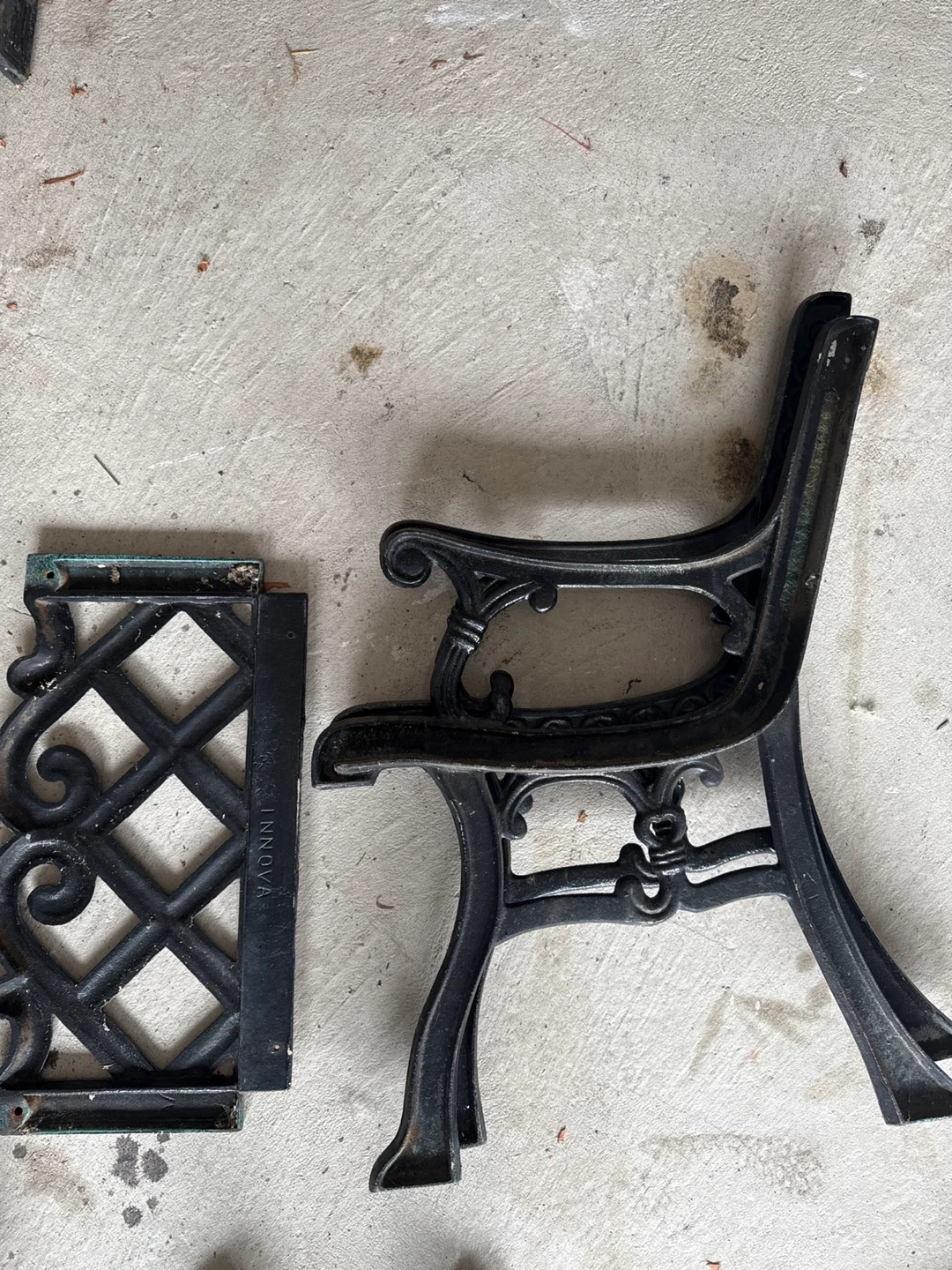 Selling parts of an Innova cast iron bench. Includes the side and seat components. Great for restoring or repurposing!