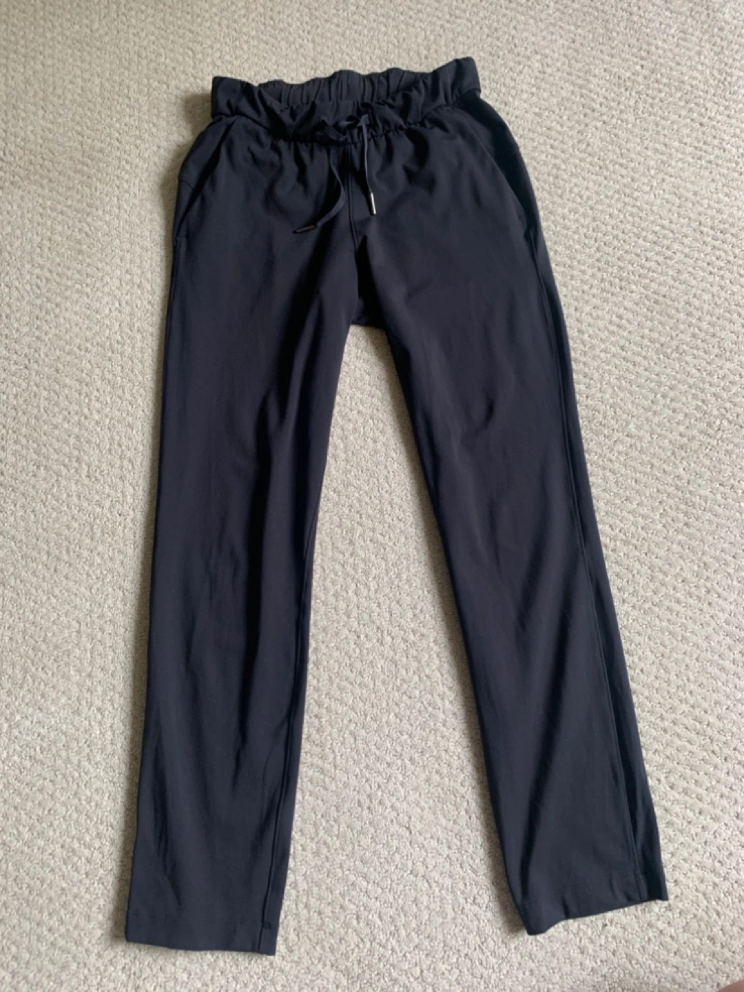These Lululemon black pants are in great condition! They feature a comfortable elastic waistband with a drawstring. Perfect for workouts or casual wear!