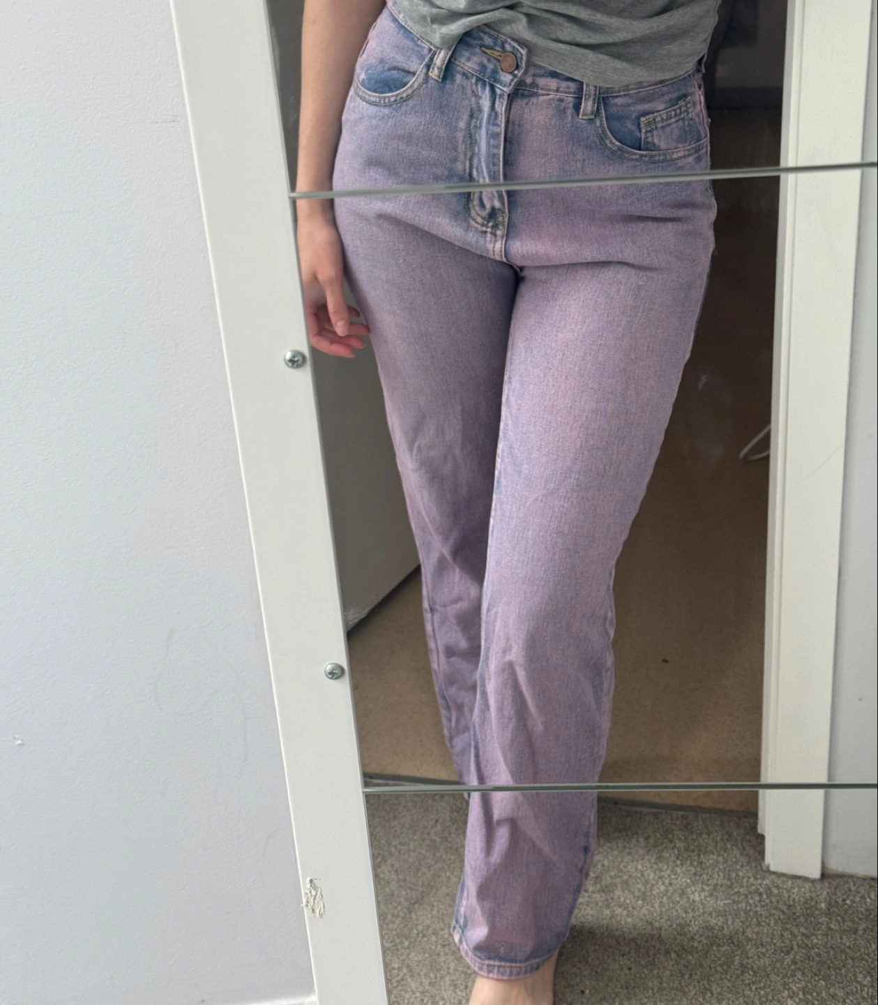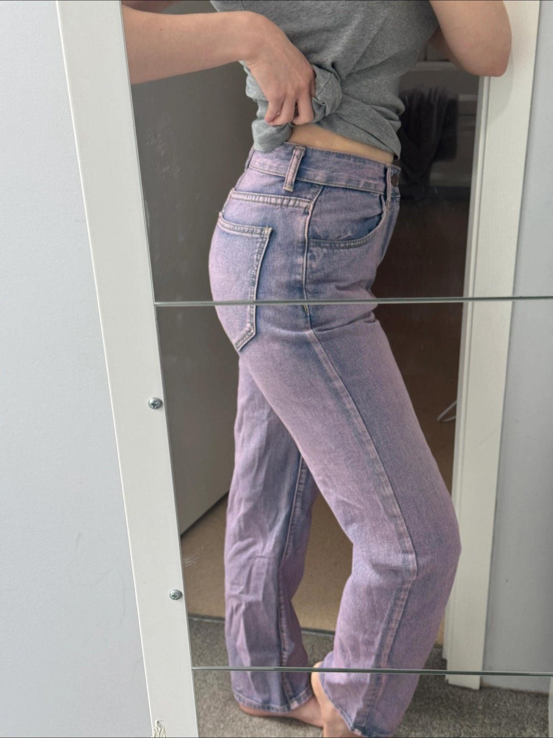 Selling a pair of purple jeans. They're in great condition and ready for a new home! The colour is a lovely lavender shade, perfect for adding a pop of colour to your wardrobe. I’m a size 4 & 5’4” tall for reference Moving soon!!! Please check my other listings!