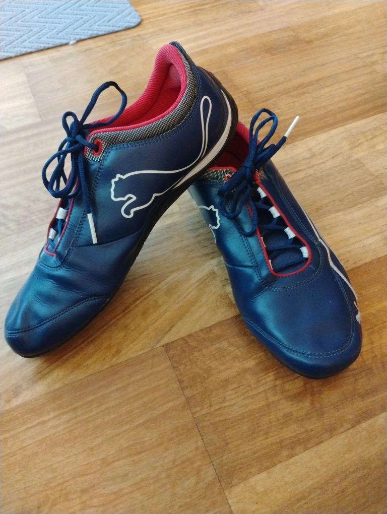 Selling a pair of Men's Puma shoes size 11 in blue leather! They are in good condition. The iconic Puma logo is prominently displayed, adding a touch of sporty style. Men's size 11. Cash only