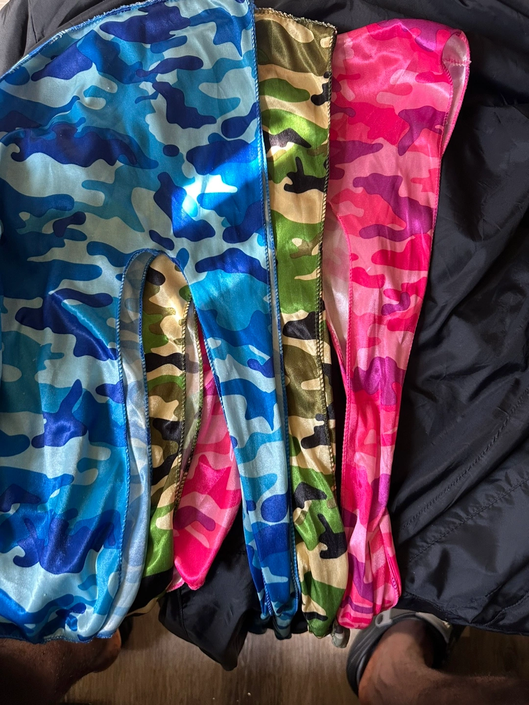 Selling a set of three camo durags! You'll get one in blue, one in green, and one in pink. They're in great shape and ready to wear