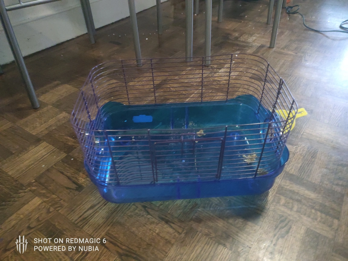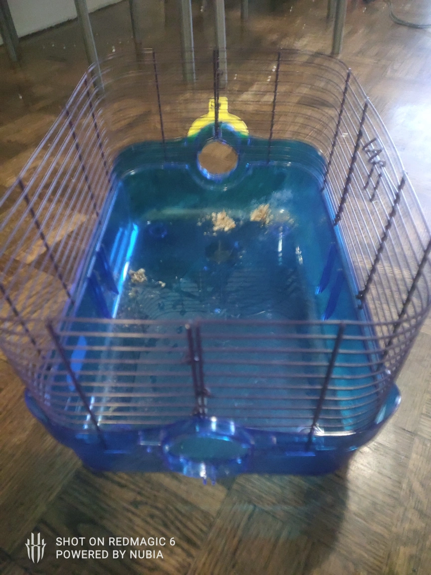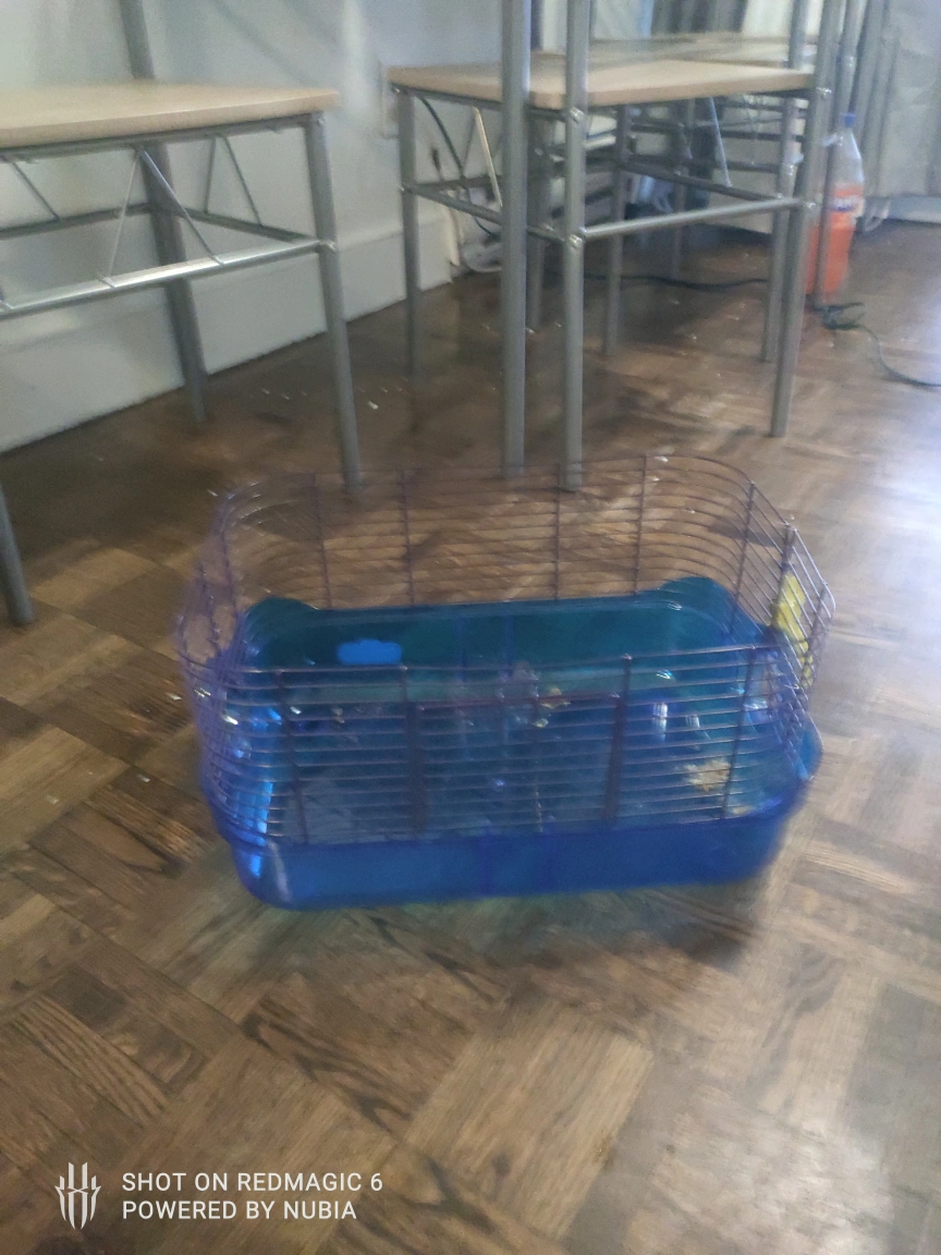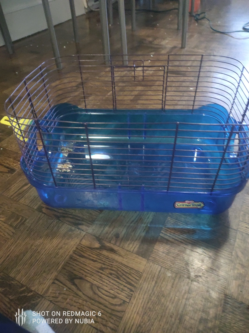 Selling a small animal cage, perfect for a hamster or gerbil! It comes with a metal fence to give your little friend some extra space to roam around. The cage is in good condition and ready for a new home