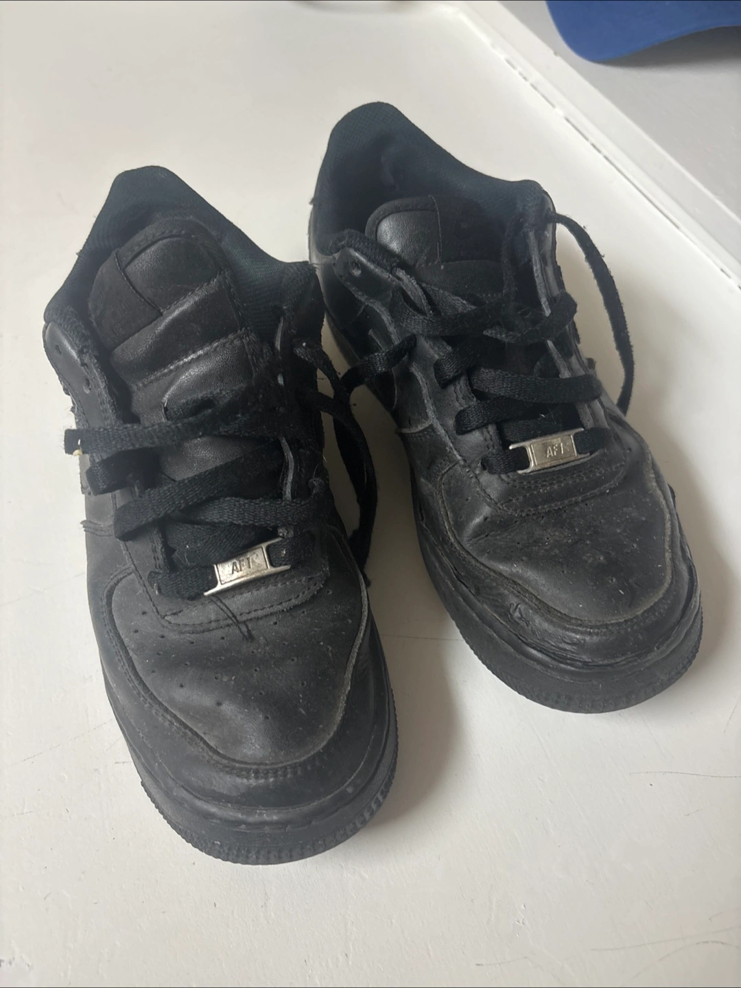 Selling a pair of black Nike Air Force 1 sneakers. They show some signs of wear, as you can see in the pictures.