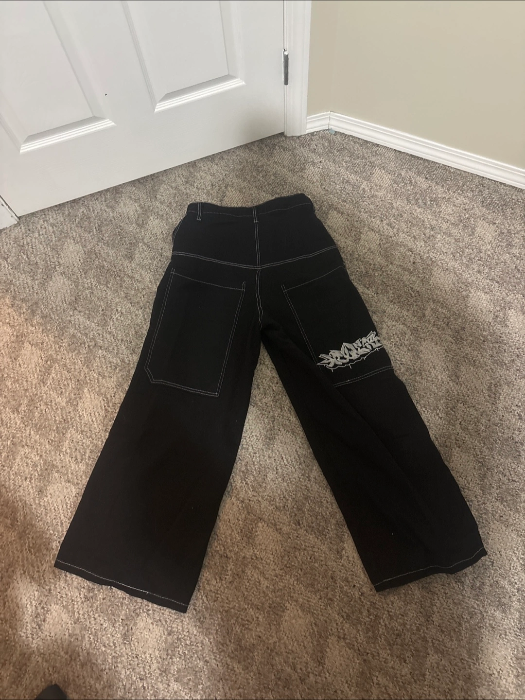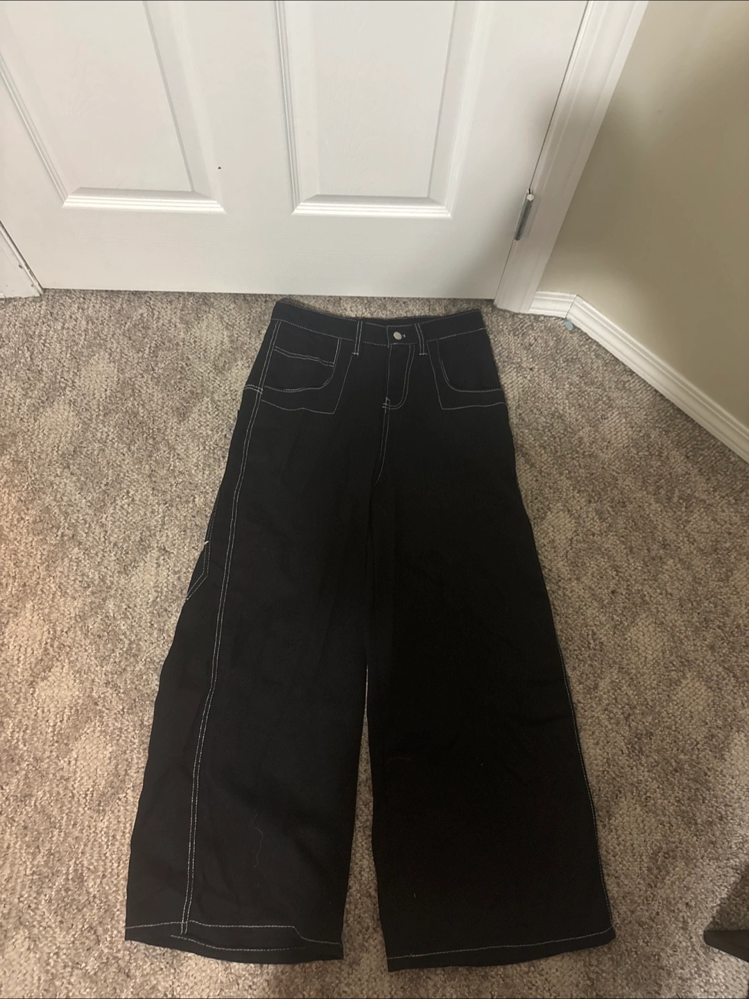 Selling a pair of black wide-leg pants. They're in great condition and have a stylish, relaxed fit. Perfect for a casual or dressed-up look!