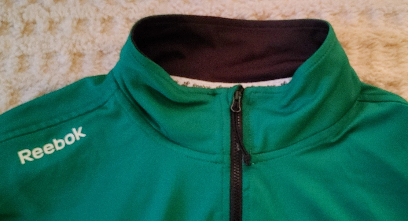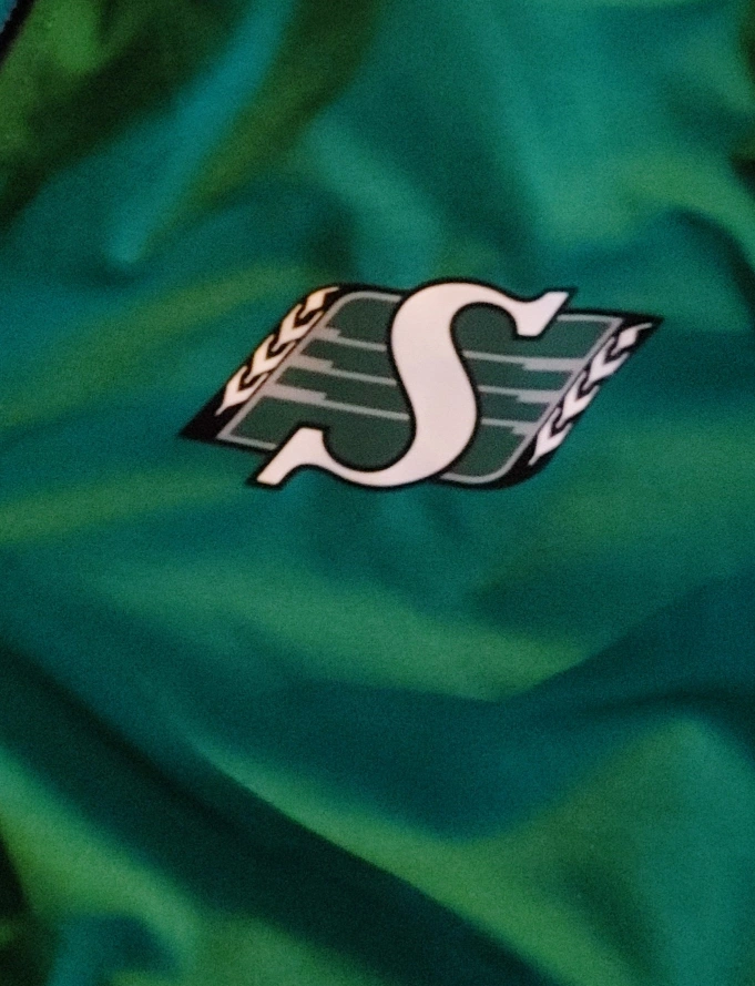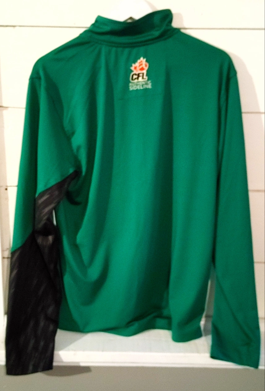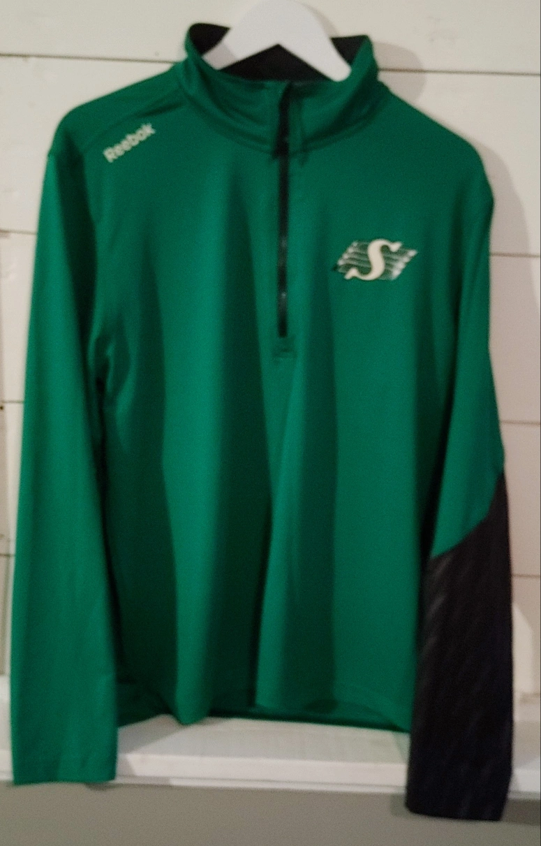 Men's Authentic CFL Reebok Saskatchewan Roughriders pullover in size medium. It's green with black accents and features the Roughriders logo. Zipper in perfect working order. Very good condition. Smoke free home pick up Mt.Brydges cash only.