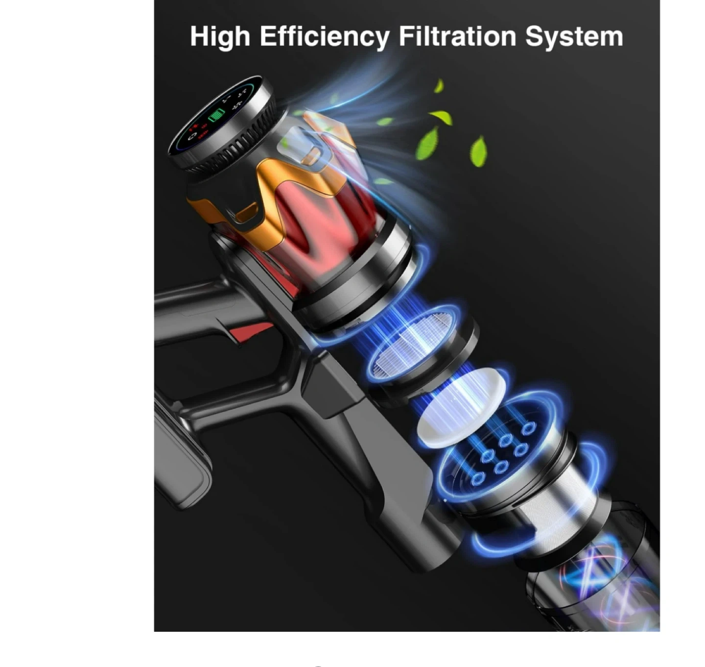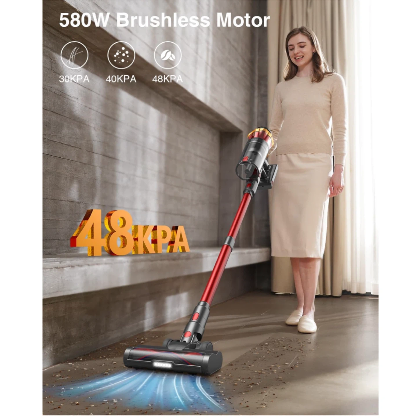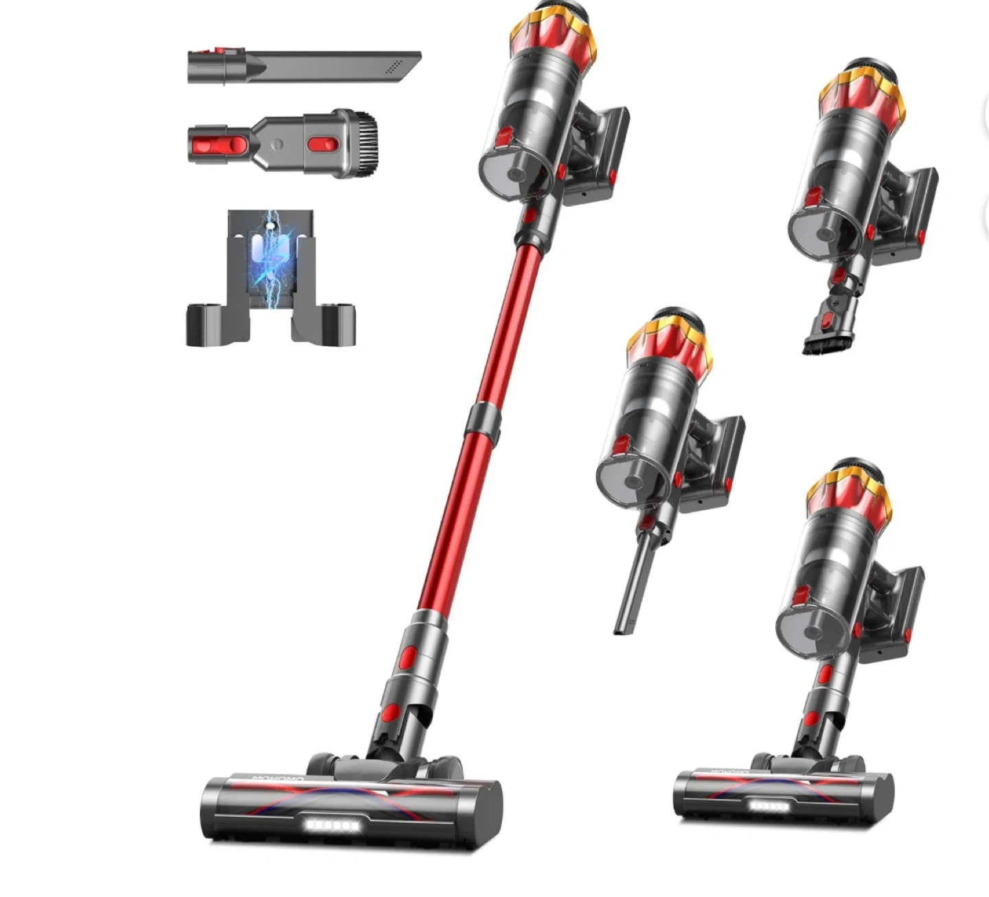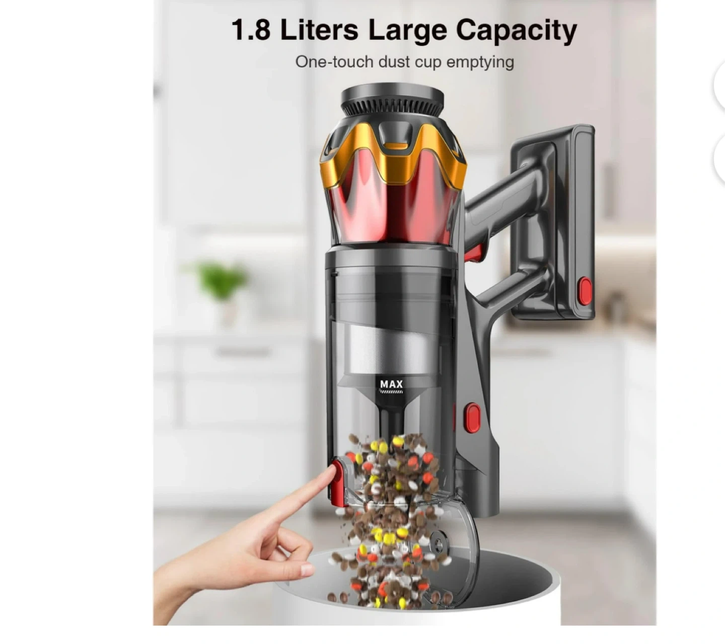 Selling a cordless stick vacuum cleaner. It features a 1.8 Liters Large Capacity dust cup with one-touch emptying. It also has a self-standing design, so you can store it anywhere. High efficiency filtration system included!