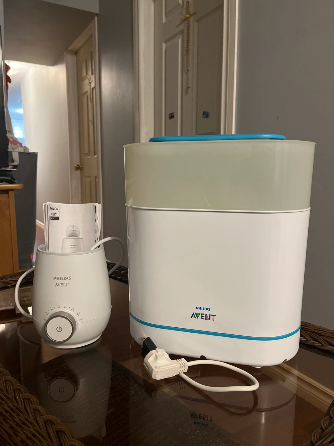 FREE Philips Avent bottle sterilizer and warmer. It's in great condition and ready to help with feeding time! Perfect for keeping your baby's bottles clean and warm. Small one is unused (new) and the big one is just slightly used - good as new! For PICK-UP only!!!