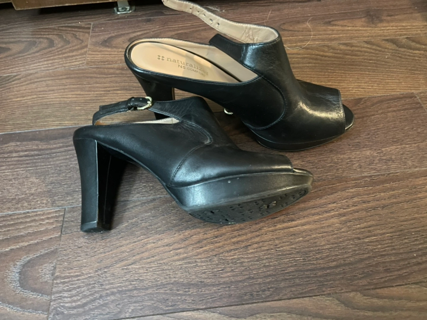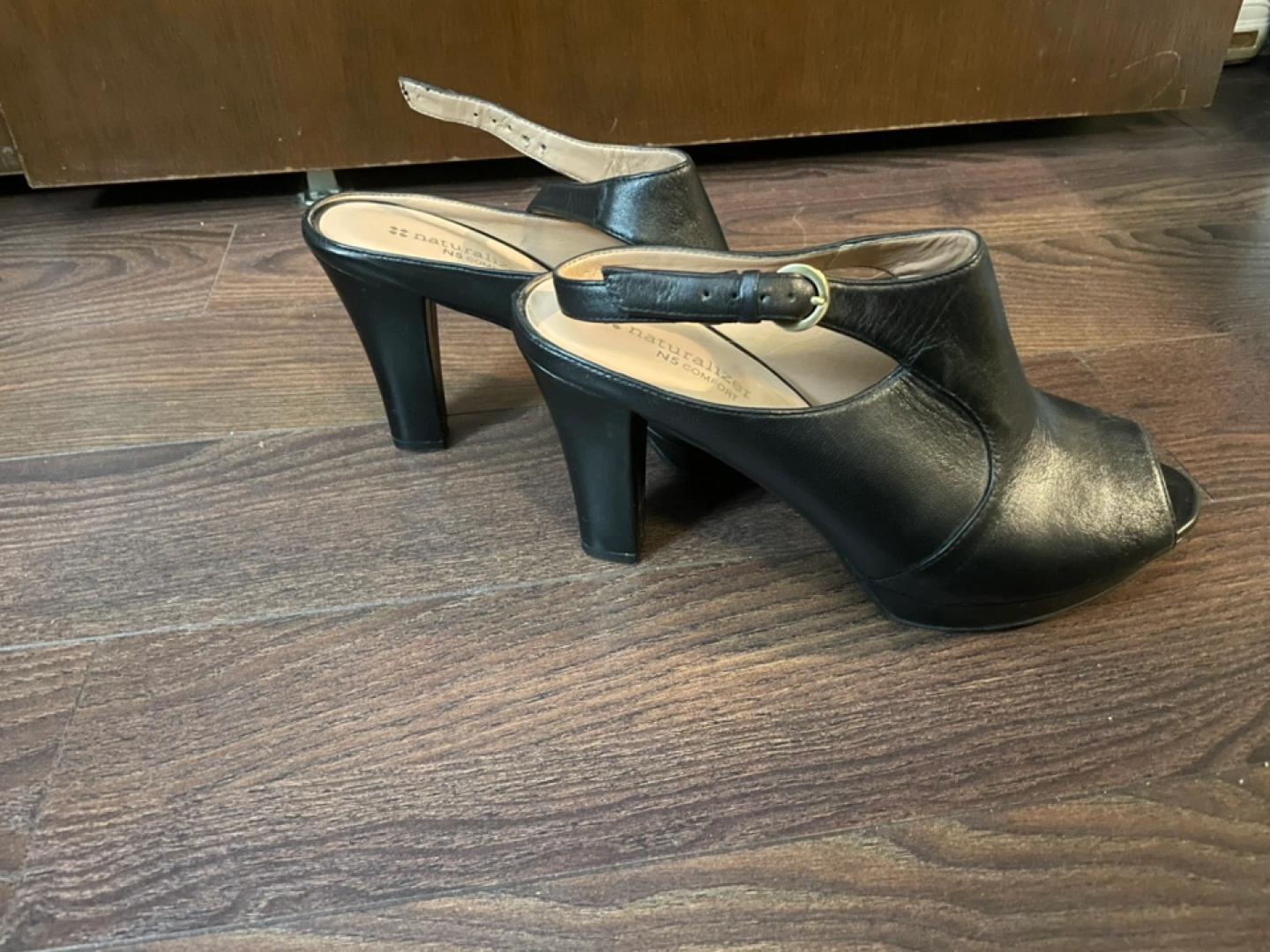 Selling a pair of Naturalizer black leather heels in size 8.5. These stylish heels are perfect for any occasion! They feature a comfortable design and are in great condition. Feel free to message me with any questions!
