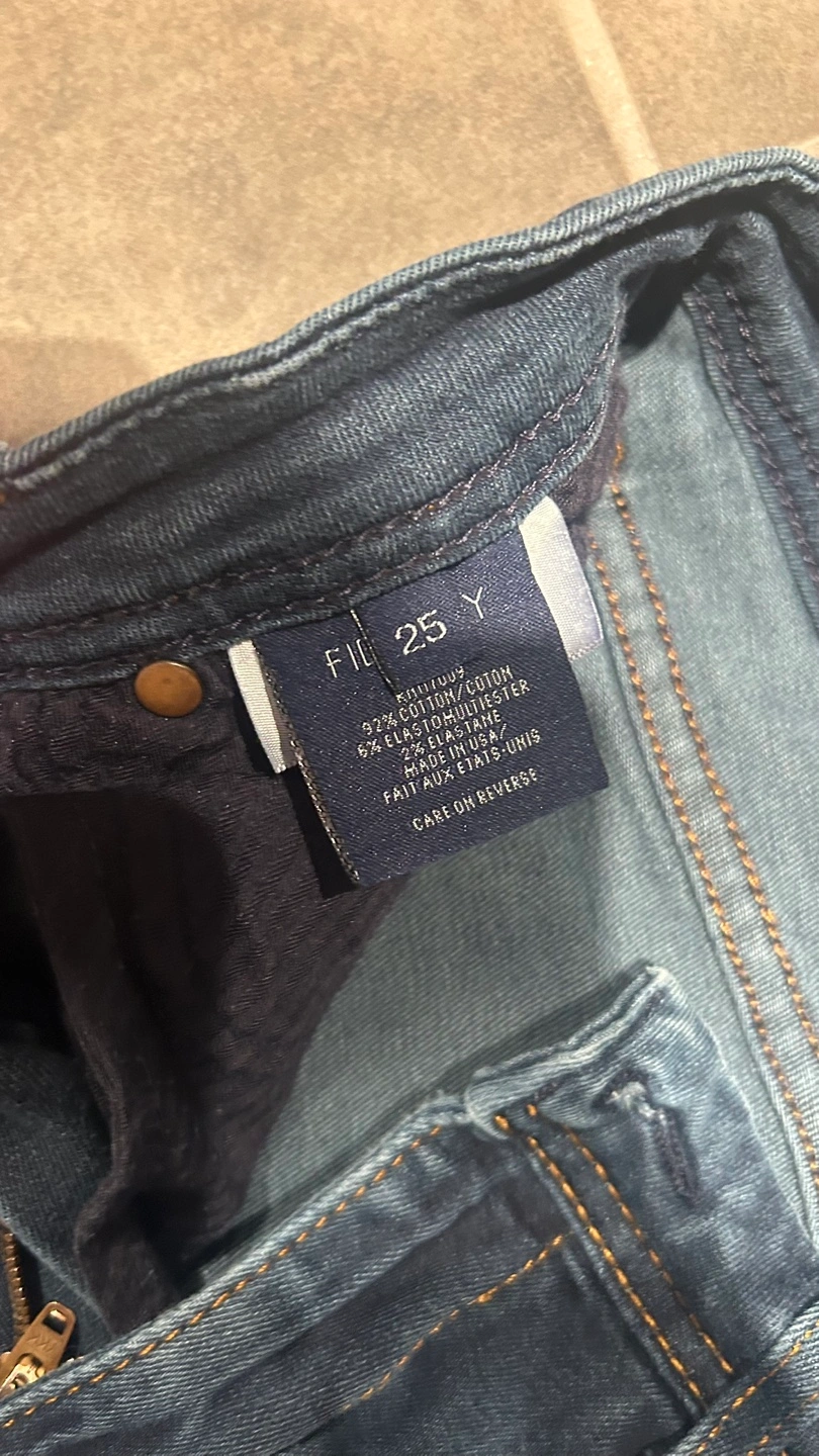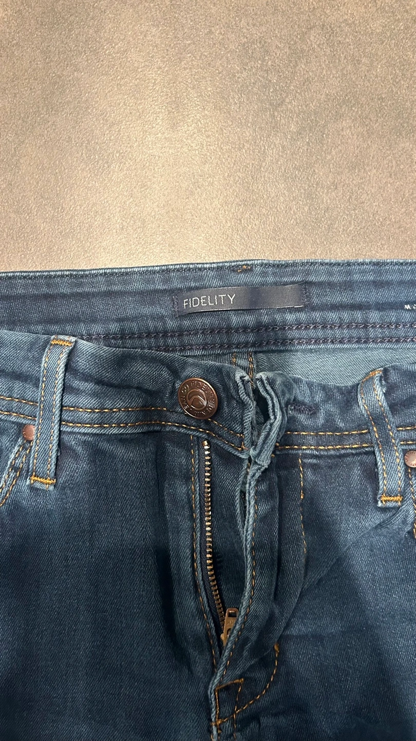 Selling a pair of Fidelity jeans in size 25. They're made of 92% cotton, 6% elastomultiester, and 2% elastane. They are in good condition and ready for a new home!