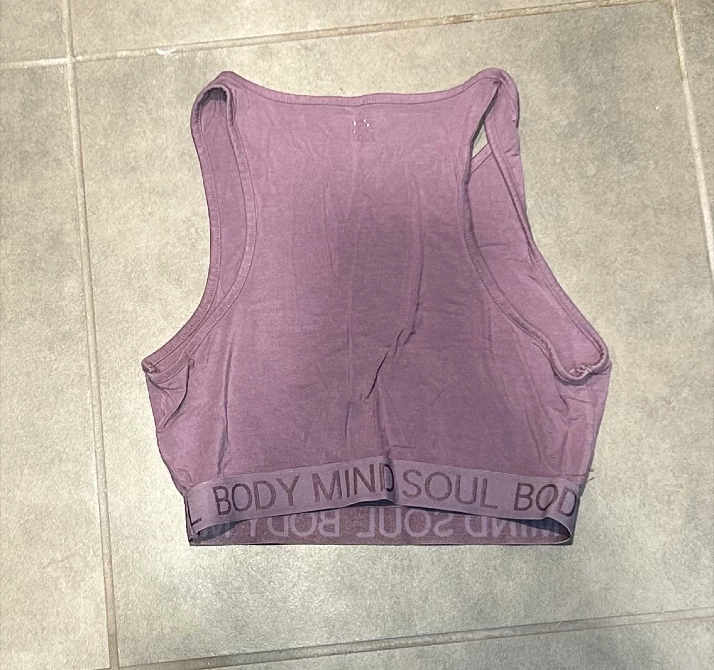 Selling a La Vie en Rose tank top in a lovely purple colour. It's a size S/P and features the words 'MIND SOUL BODY' on the bottom band. Perfect for workouts or casual wear!