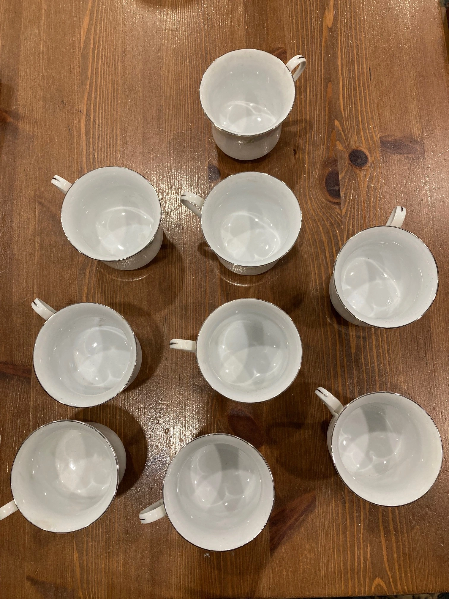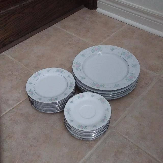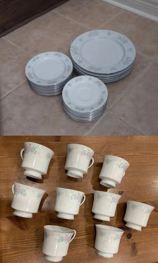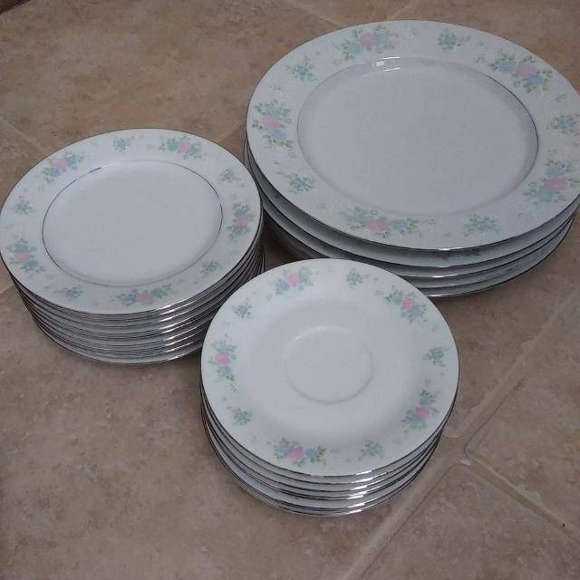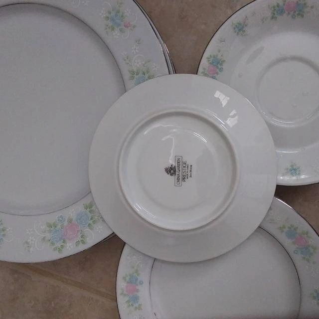 Beautiful 22-piece set of China Garden by Prestige plates and 9 matching cups, featuring a delicate floral pattern with soft pastel roses and silver trim. Includes dinner, salad, and dessert plates in excellent vintage condition. Perfect for elegant casual dining or as a collector’s piece. Condition: Great pre-owned condition Ideal for hosting, gifting, or adding vintage charm to your decor Full photos available to show pattern and trim