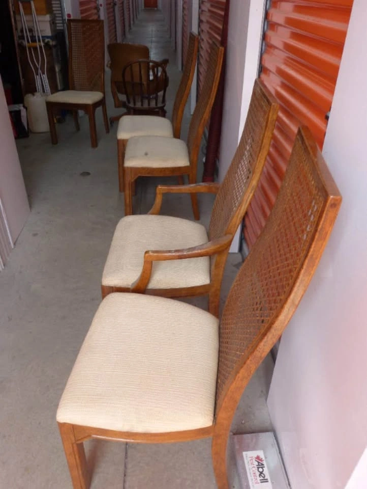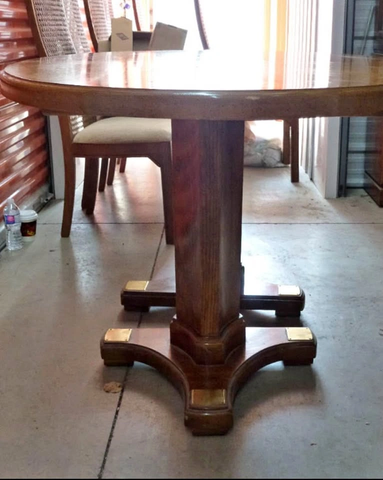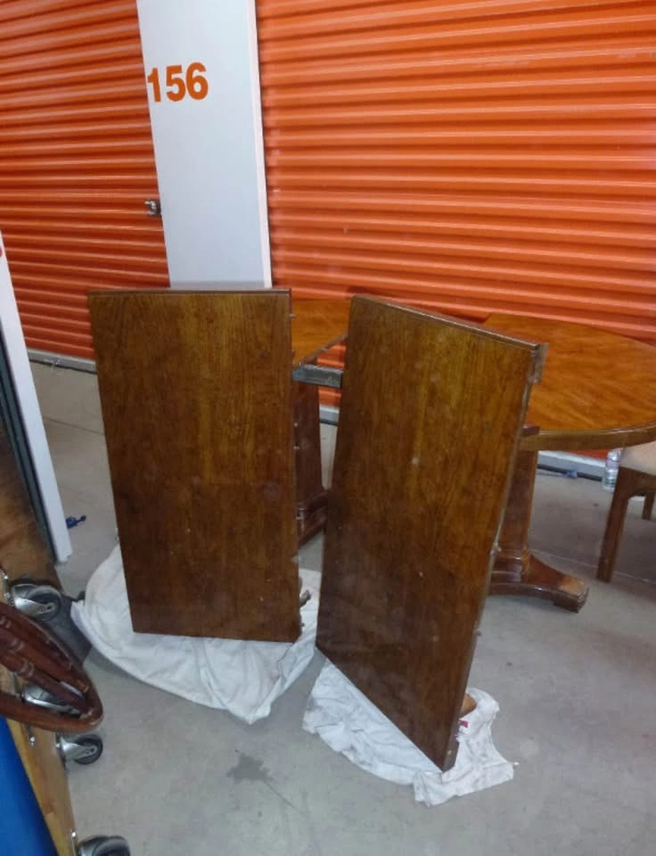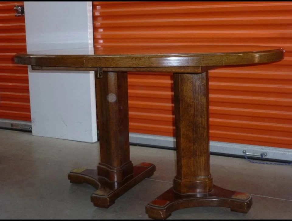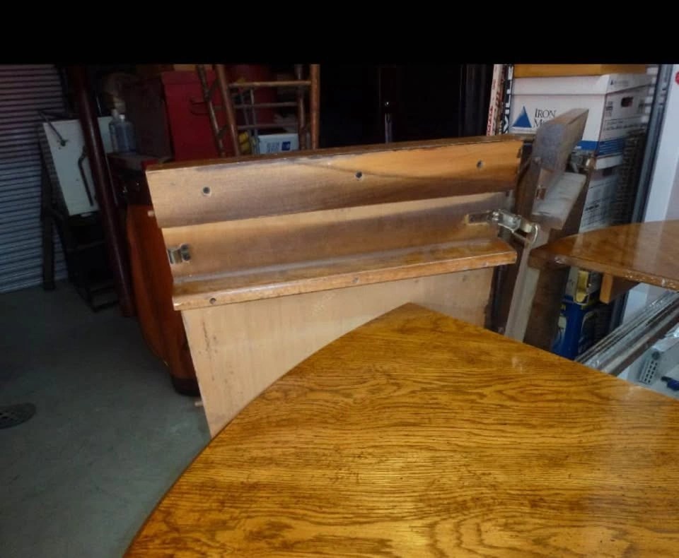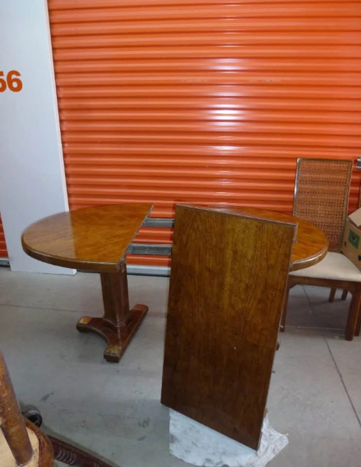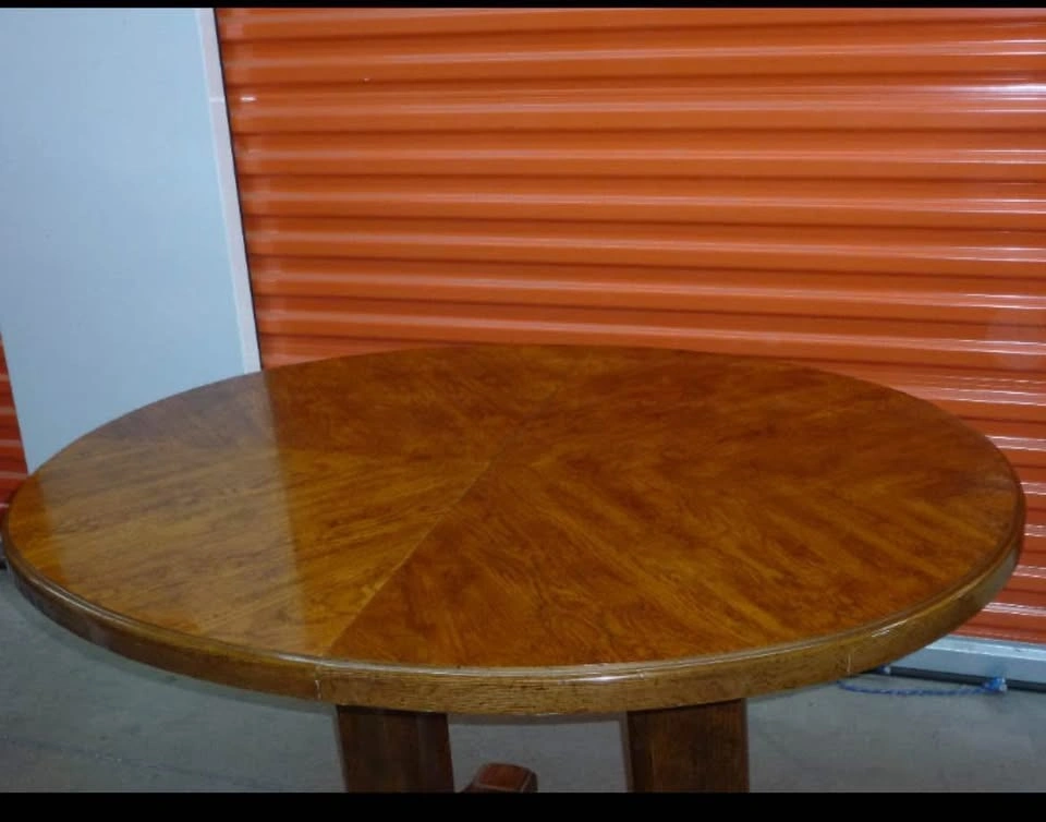 Thomasville Oak Pedestal Table w 6 Chairs and 2 leaves. Pictured are 5 of the 6 chairs. The set has 2 armed chairs. Used but in immaculate condition. This offering is part of a storage locker liquidation that includes various other items. Measurements 52"Hx42"Wx31"H. Pick up near Piegan Trail SE. Feel free to message if you have any questions!