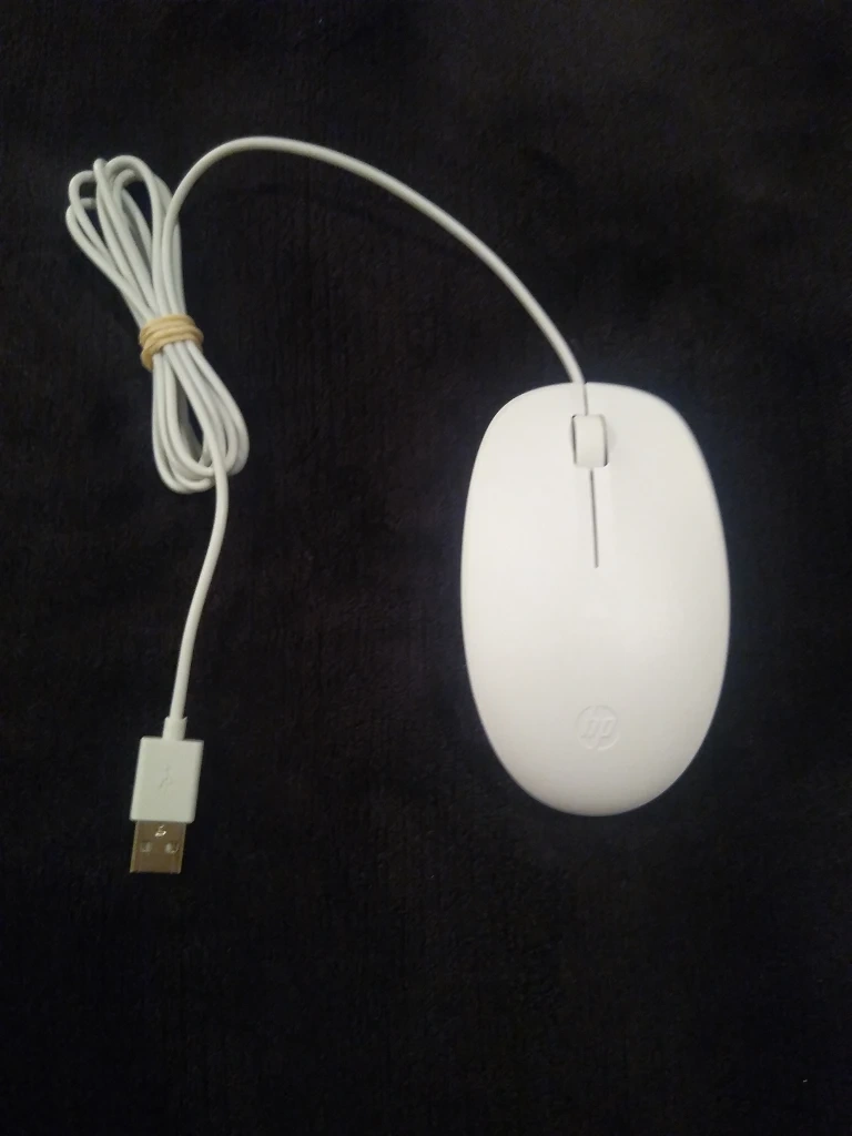 Selling a HP wired mouse in white. It came with my new computer but I kept my wireless one instead. It's brand new and ready to plug and go. Optical mouse with two buttons and a smooth rolling wheel on top.