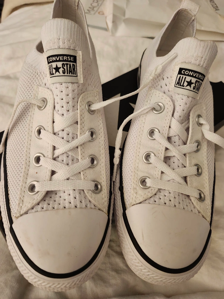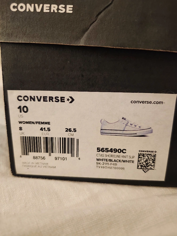 Selling a pair of Converse CTAS Shoreline Knit Slip sneakers in white, size 10. These are in great condition and come with the original box. They're super comfy and easy to slip on and off, perfect for everyday wear!