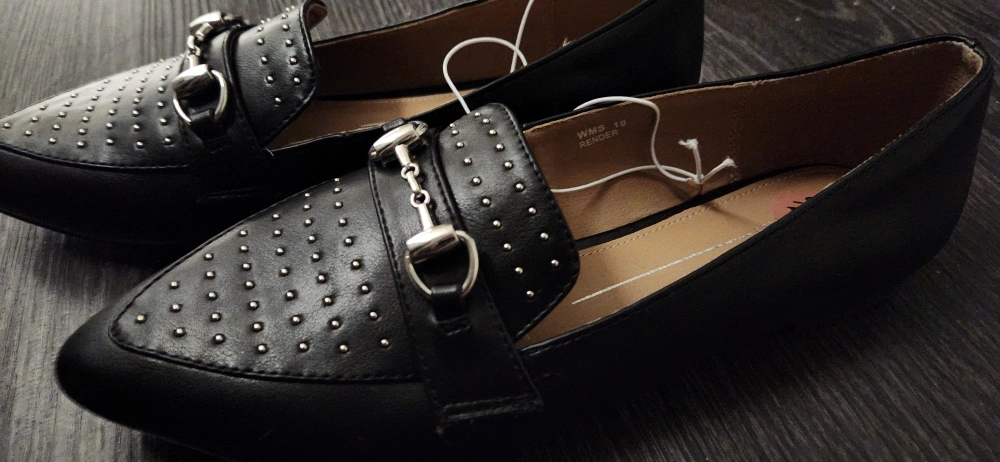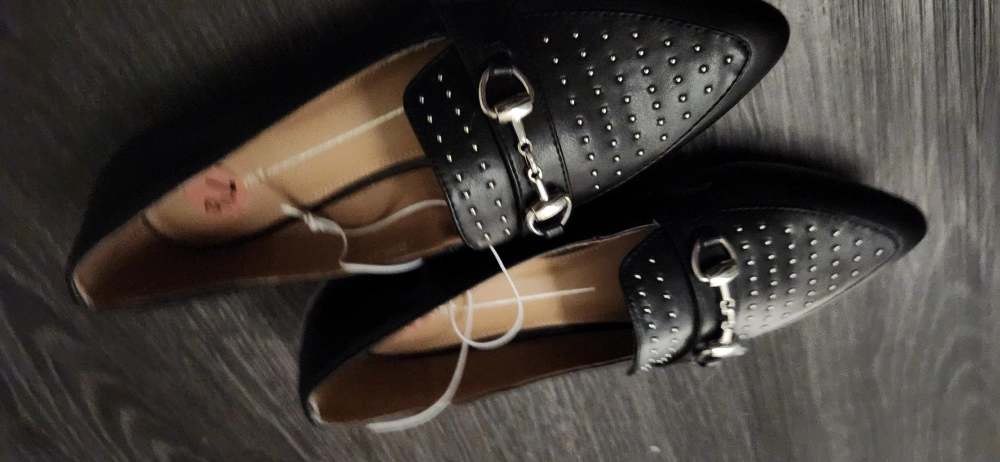 Here are some Dolce Vita Render loafers in a size 7.5! They're black and feature studded detailing and a horsebit accent. These are perfect for adding a touch of elegance to any outfit