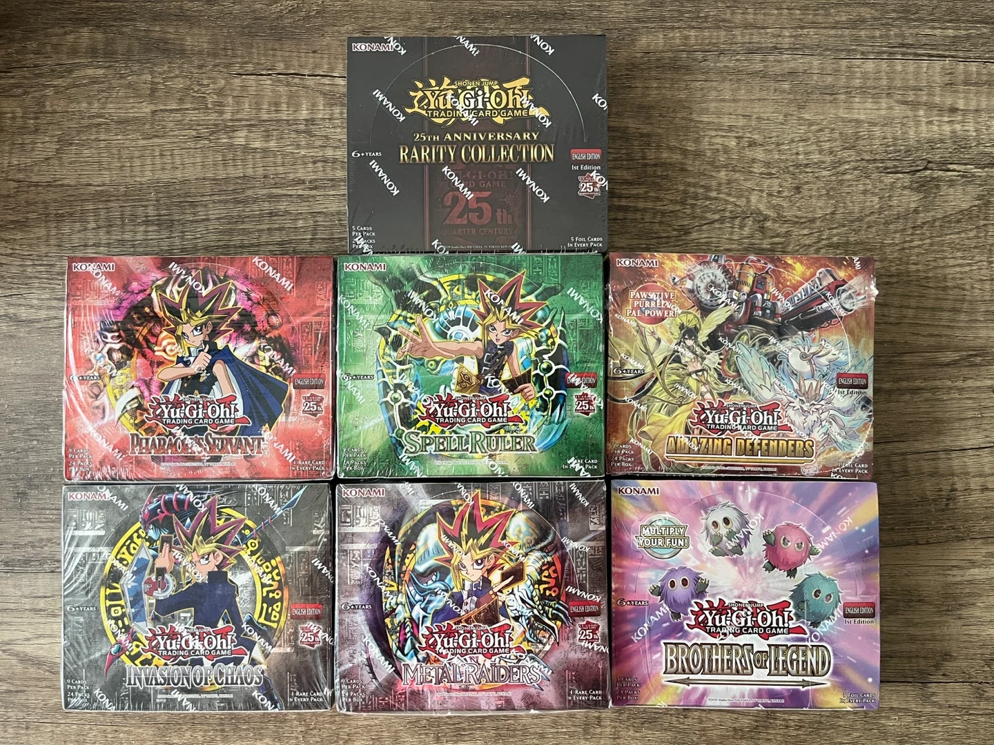 Selling a collection of sealed Yu-Gi-Oh! booster boxes! Perfect for any Yu-Gi-Oh! enthusiast or collector. - Amazing Defenders: $70 - Brothers of Legend: $90 - 25th Spell Ruler: $105 - 25th Pharaoh's Servant: $105 - 25th Invasion of Chaos: $100 - 25th Metal Raiders: $140 - 25th Rarity Collection: $200