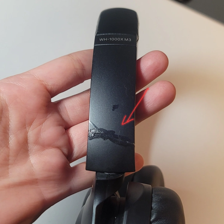 Sony WH-1000XM3 Wireless Noise Cancelling Headphones Pre-owned and in working condition. Amazing sound quality with industry-leading noise cancellation, touch controls, and long battery life. ⚠️ Please note: The headband has a visible crack (shown in pictures), I super glue it and I was using ir like that. It doesn’t affect the functionality of the headphones. Still great for music, calls, and travel. Price reflects the condition.