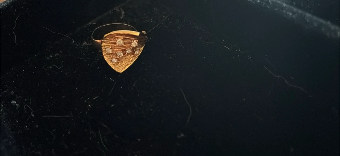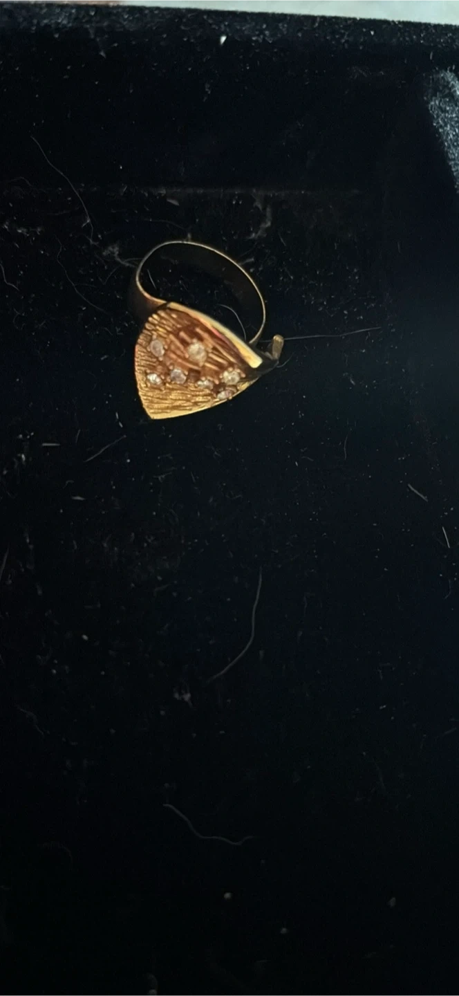 Selling a beautiful gold ring adorned with diamonds. It's in great condition and comes in a box. Perfect for adding a touch of elegance to any outfit!