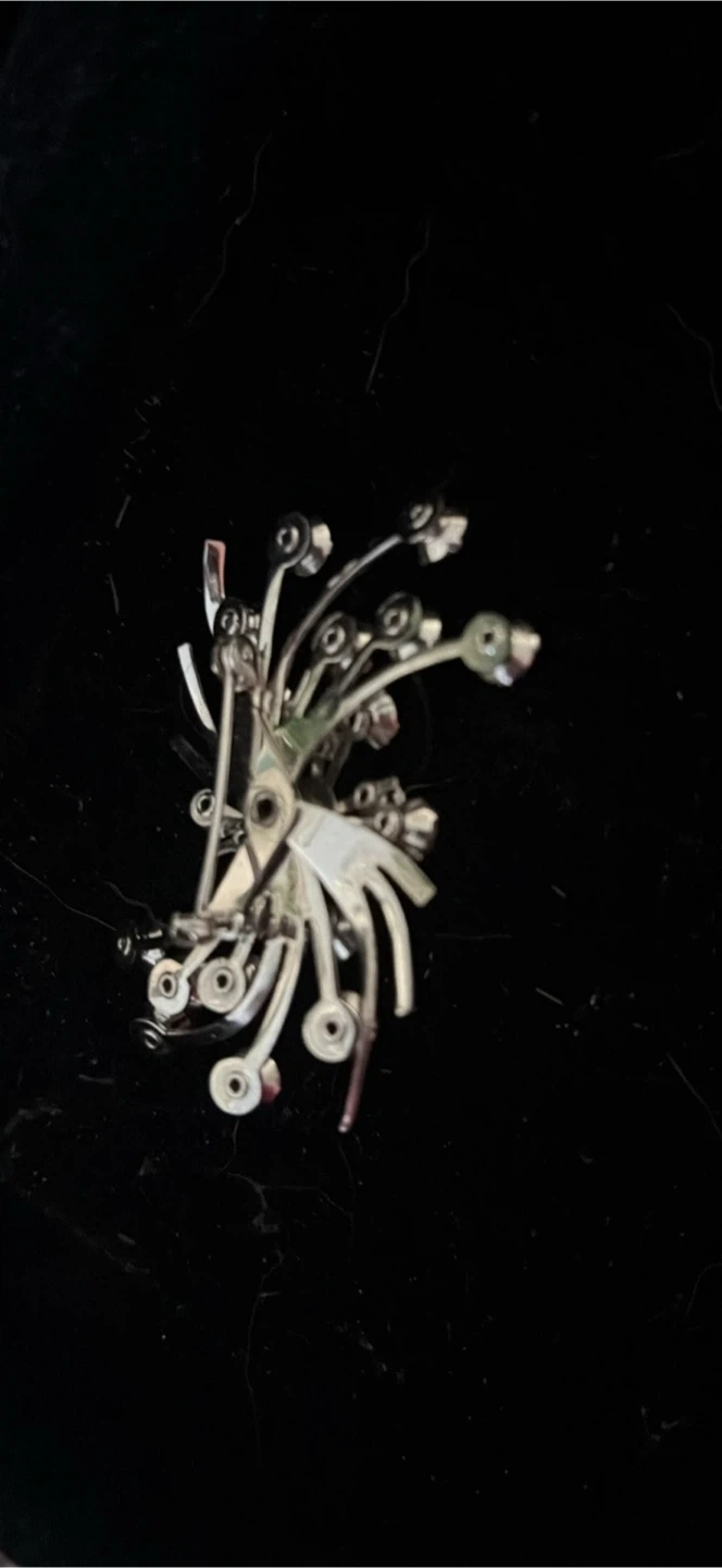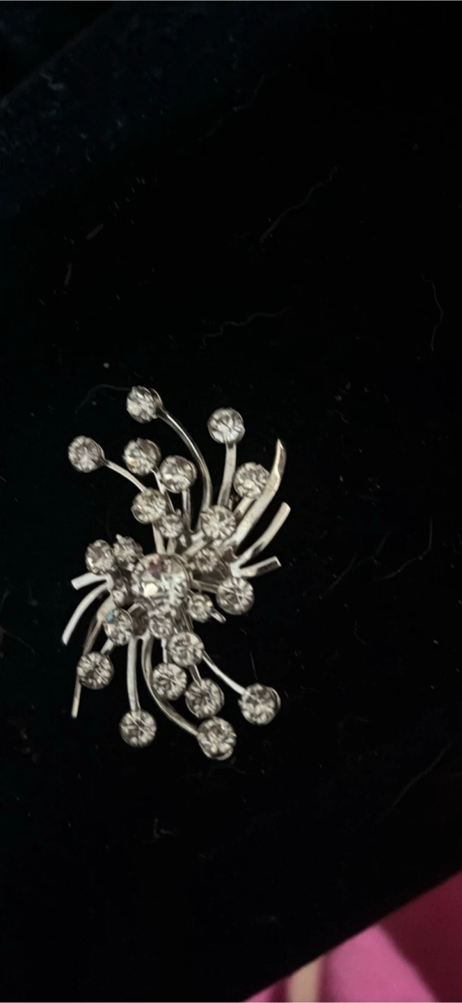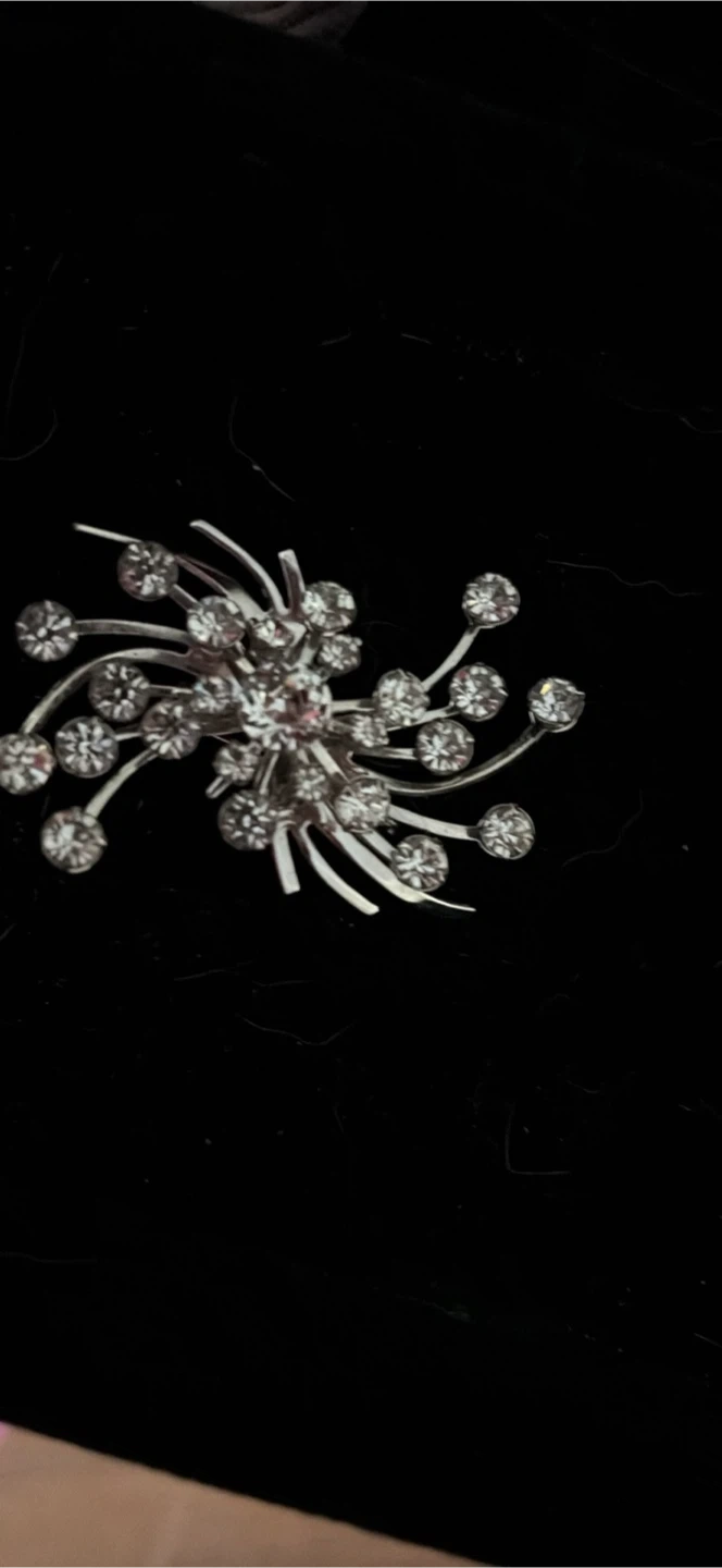 Selling a lovely silver-tone brooch featuring a floral design with sparkling accents. It's in great condition and would add a touch of elegance to any outfit!