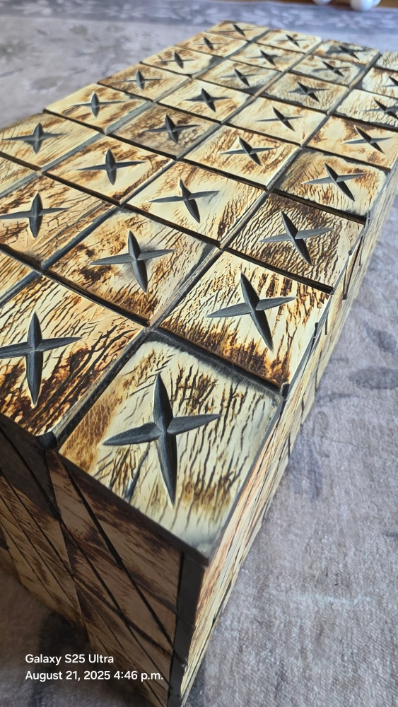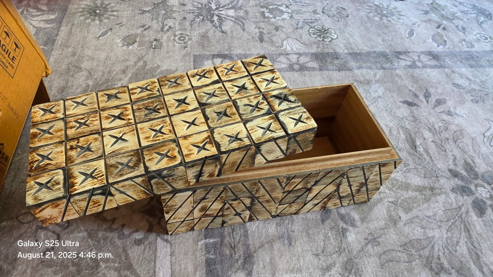 Here's a wooden decorative box. It's perfect for storing small items or adding a rustic touch to your home decor sells for $90 plus taxes