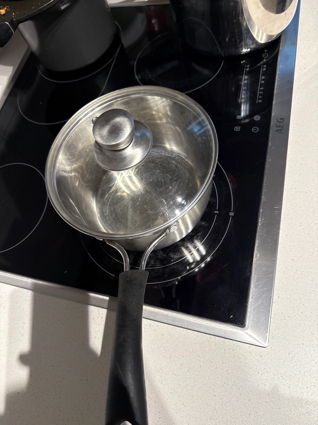 A stainless steel saucepan with a glass lid is up for grabs. It's in great shape and ready for your culinary creations!