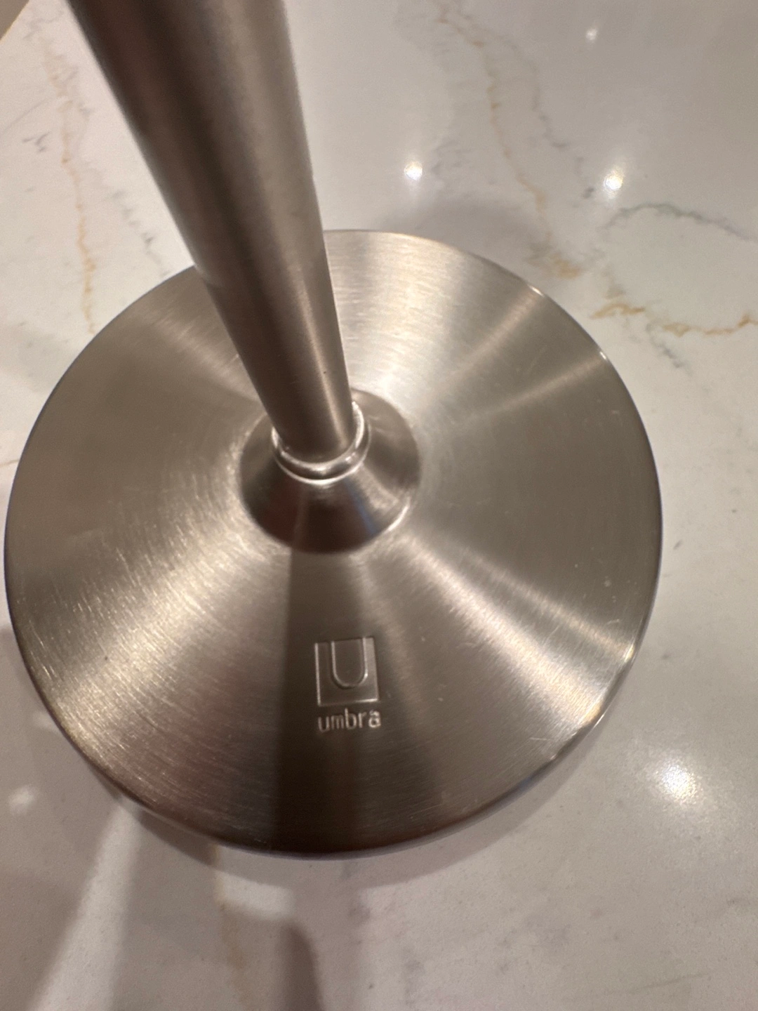 Here's an Umbra paper towel holder with a sleek nickel finish! It's a stylish and functional addition to any kitchen. Perfect for keeping your paper towels handy and organized
