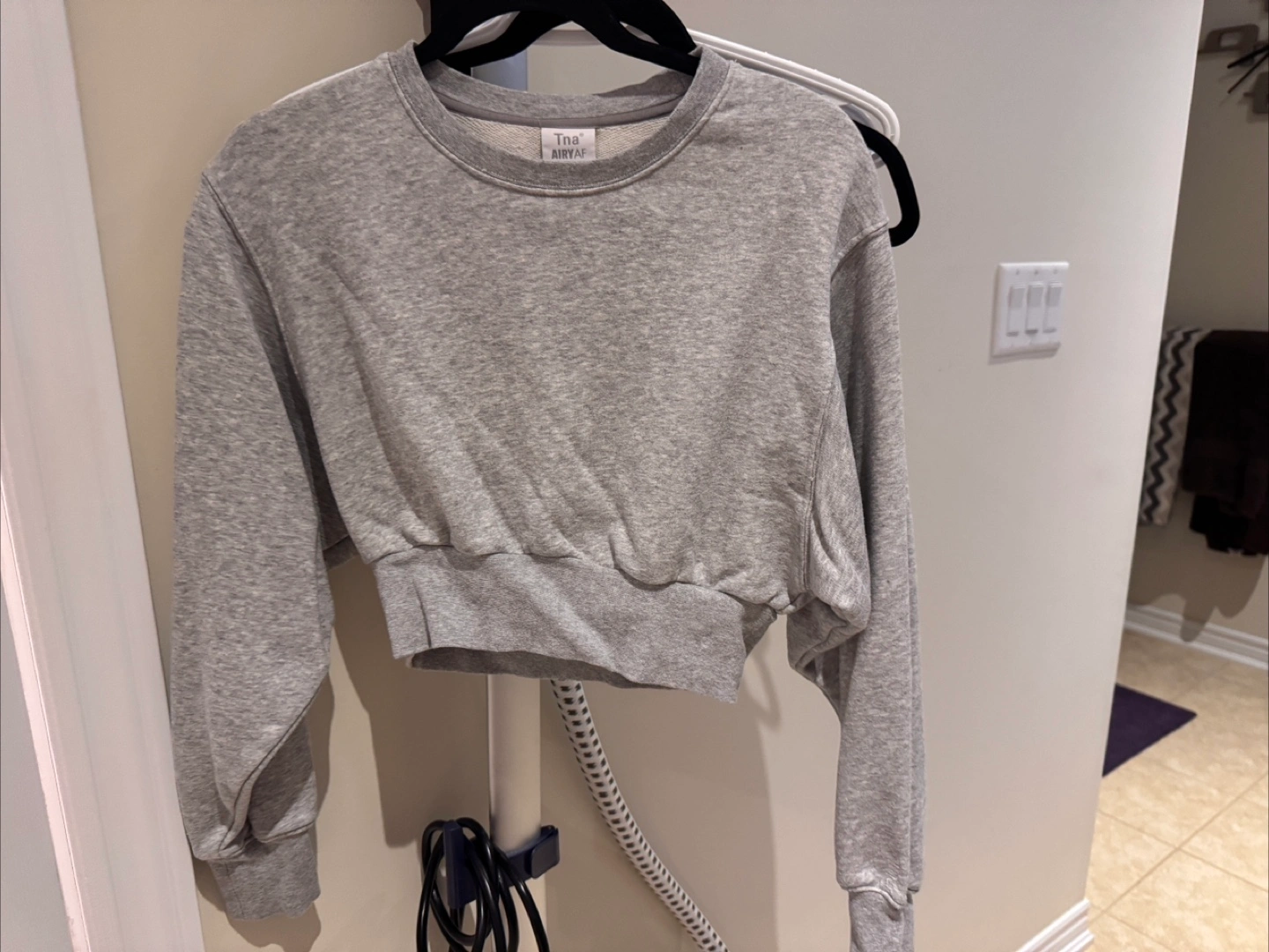 Selling a Tna AiryAF fleece cropped sweatshirt. It's a super comfy and stylish piece! Available in size 2XS and a lovely grey colour. Perfect for layering or wearing on its own!