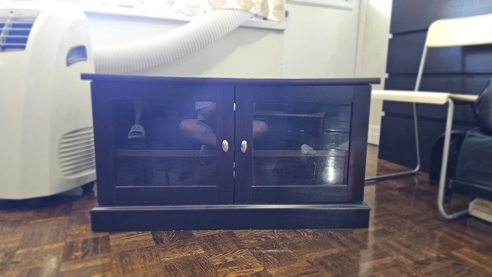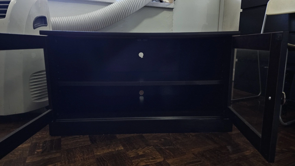 Selling a dark brown media unit with glass doors. It's in great shape and ready for a new home! Its strong and heavy. Perfect for organizing your entertainment area and adding a touch of style to your living room . Can be also used as storage. ( Height : 20inch | Width : 35.5 inch | Depth : 17.5inch) From Pet Free | Smoke Free Home ๐ Wellesley and Sherbourne