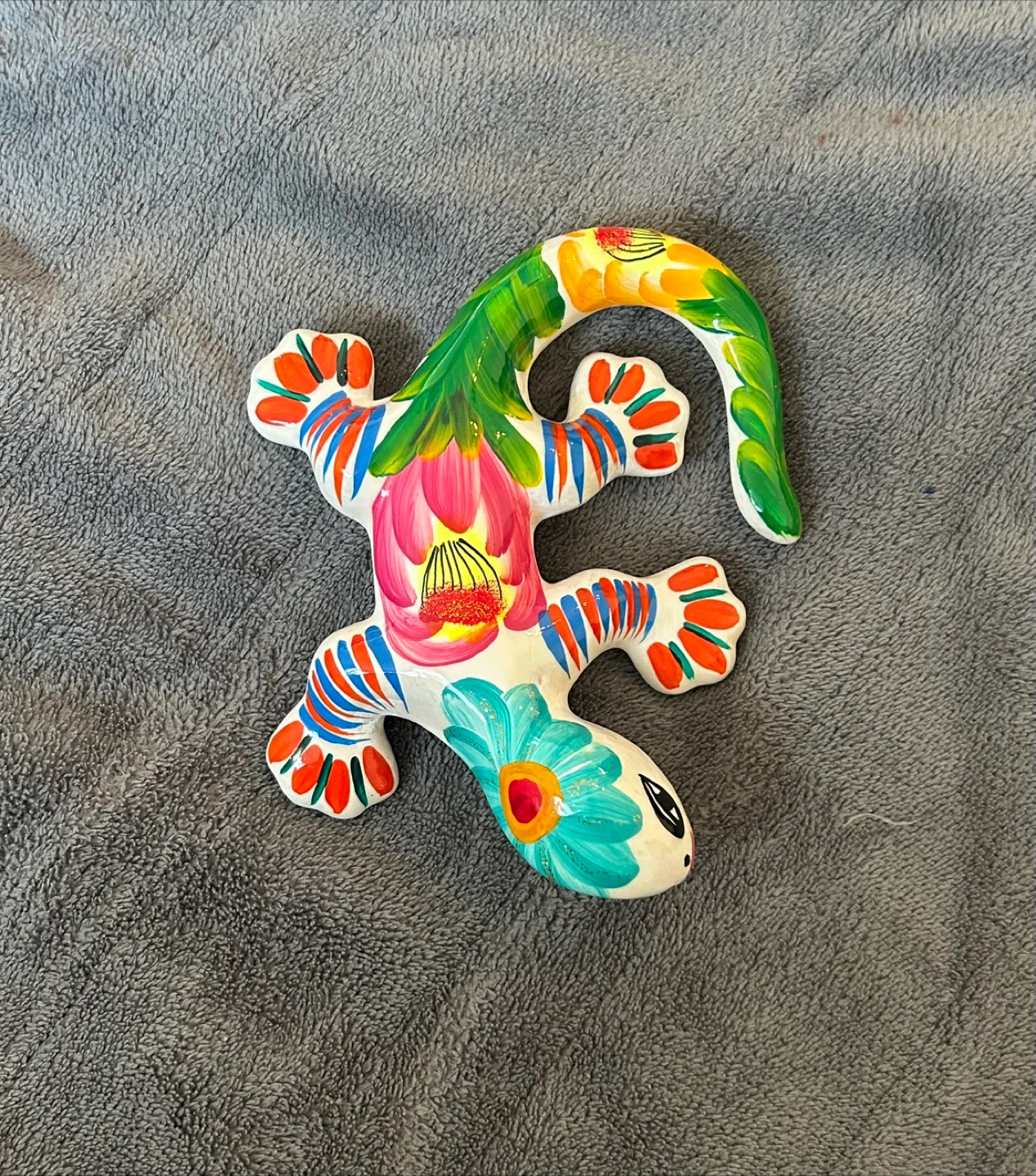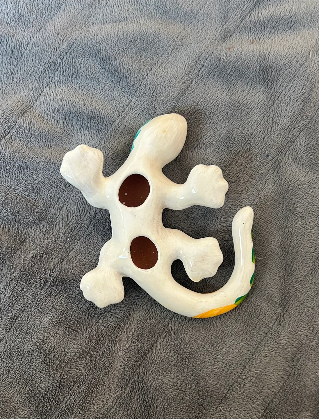Here's a cute ceramic lizard decoration! It's painted with bright colours and would look great on a wall or shelf
