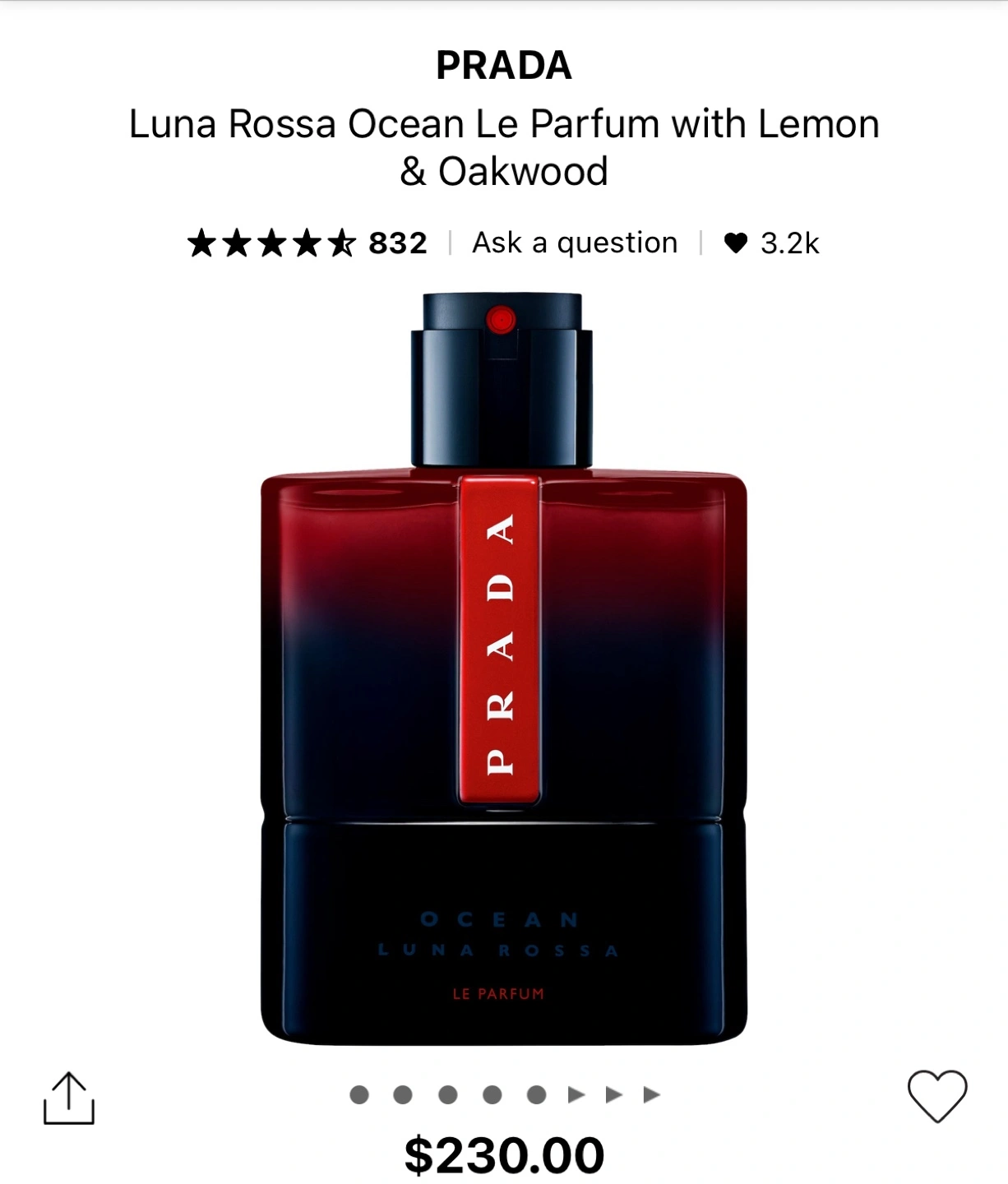 Selling a bottle of Prada Luna Rossa Ocean Le Parfum! This fragrance features a blend of lemon and oakwood. A sophisticated scent for any occasion!