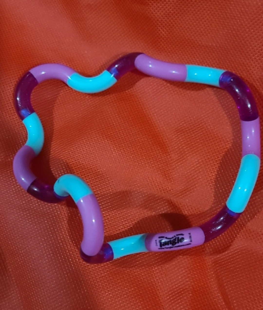 This is a Tangle Therapy relaxing toy! It's in great shape and ready to help someone de-stress. The colours are a lovely mix of purple and turquoise. Perfect for fidgeting and keeping your hands busy