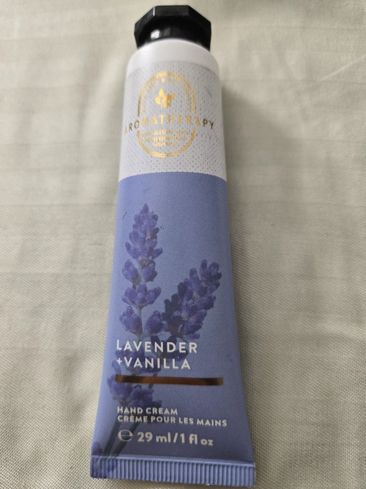 Selling a Bath & Body Works Aromatherapy hand cream in Lavender + Vanilla! It's a convenient size at 29ml/1 fl oz, perfect for on the go. Nice smell and moisturizer for skin. Easily absorb into skin.