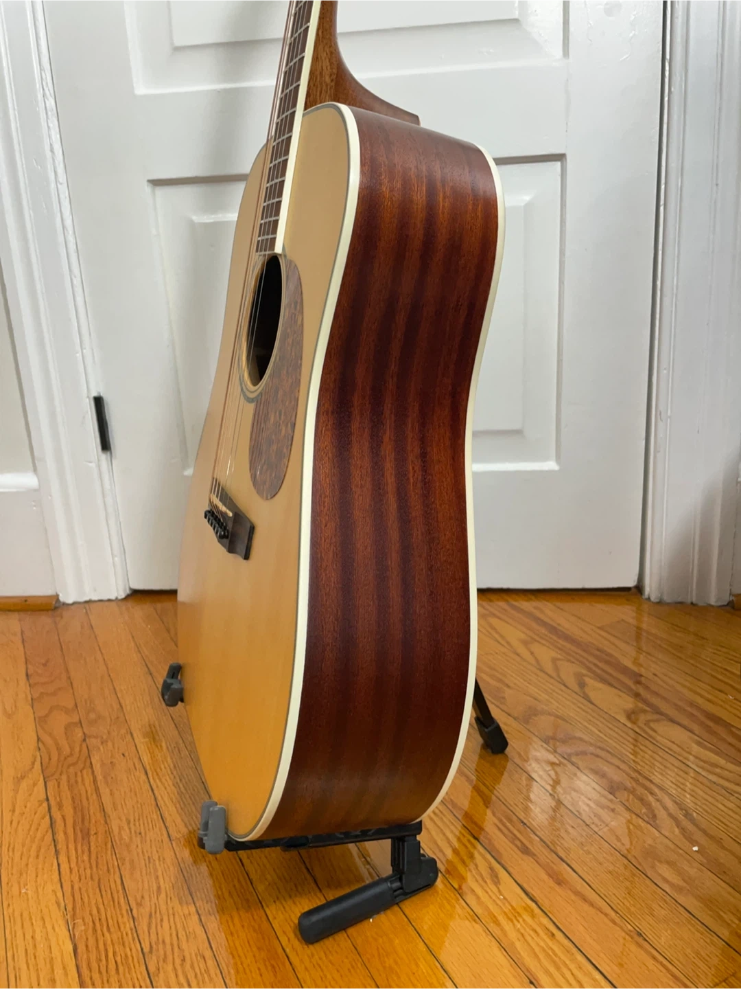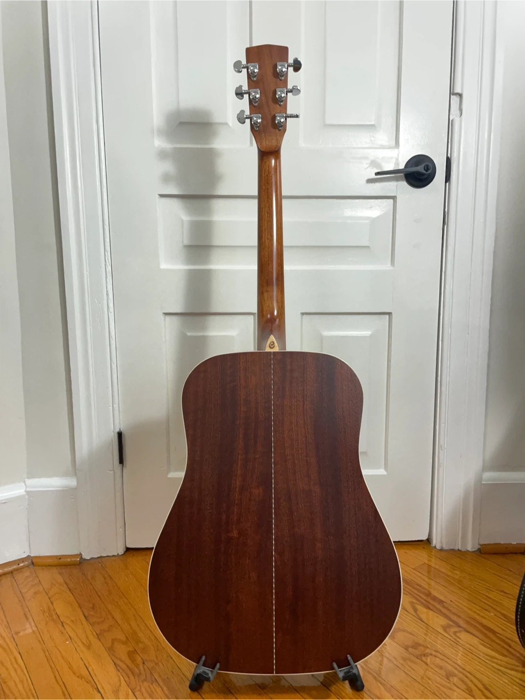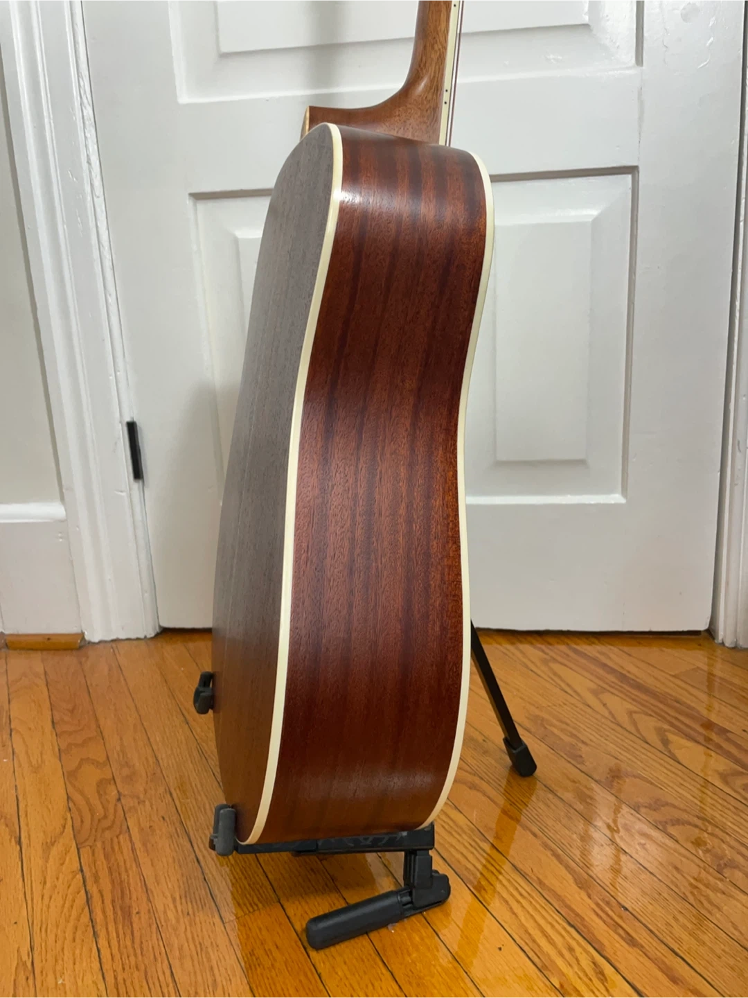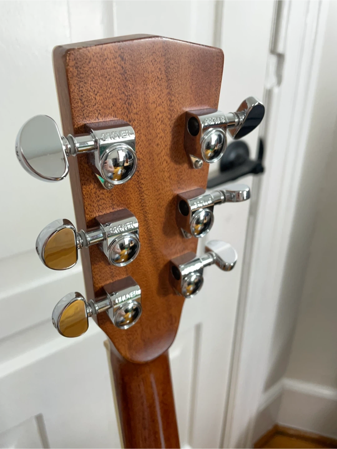 A stunning and wonderfully maintained guitar, appointed with features typically found on much more expensive instruments. Solid spruce top Solid Mahogany back and sides Rosewood fingerboard and bridge Grover Tuners Neck volute Abalone rosette Satin finish The guitar has got a great big sound to it, and is a breeze to play. Just setup it's sporting new D'Addario 13 gauge phosphor bronze strings, with low, easy playing string height. Comes with a great Cort Deluxe Soft-Side Case. Pickup near Dundas West TTC station.