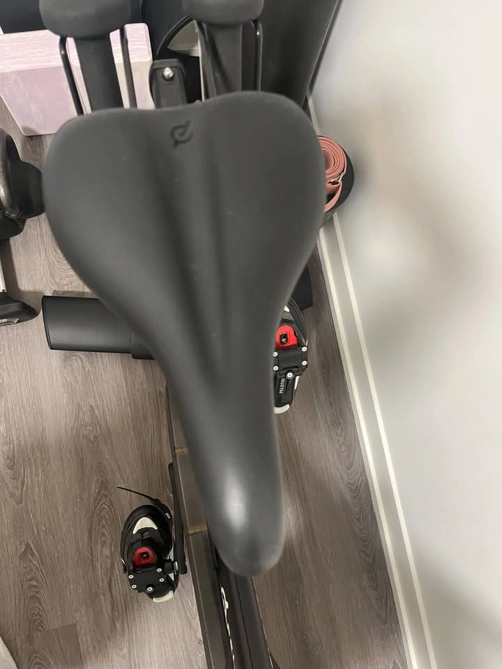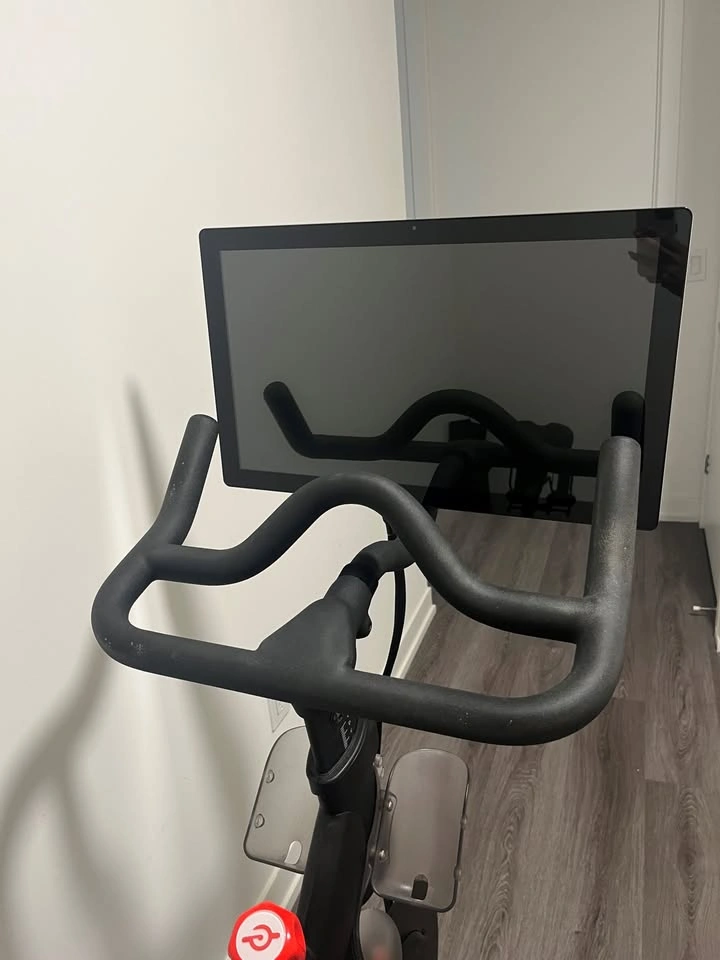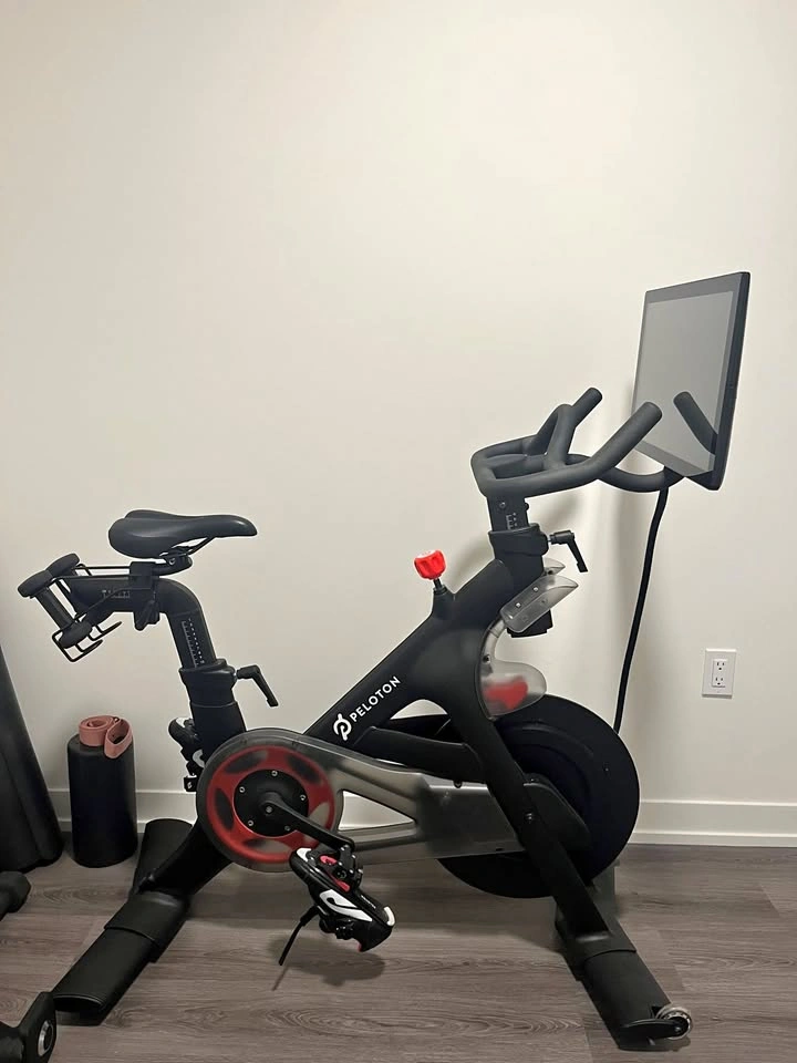 Used Peloton Bike in great condition. Includes: -Immersive 21.5" Full HD touchscreen gives you a front-row seat in every class. -Resistance knob for manual control In-workout metrics like heart rate, output, cadence, and resistance -Pair your heart rate monitor or download the Peloton Watch App to track your workouts -Compact 4' x 2' footprint, smaller than your average yoga mat -Adjustable seat, handlebar, and screen that tilts to accommodate different heights -Total Bike weight: 135 lbs -Dimensions: 59" L x 22" W x 59" H -Weights & shoes not included